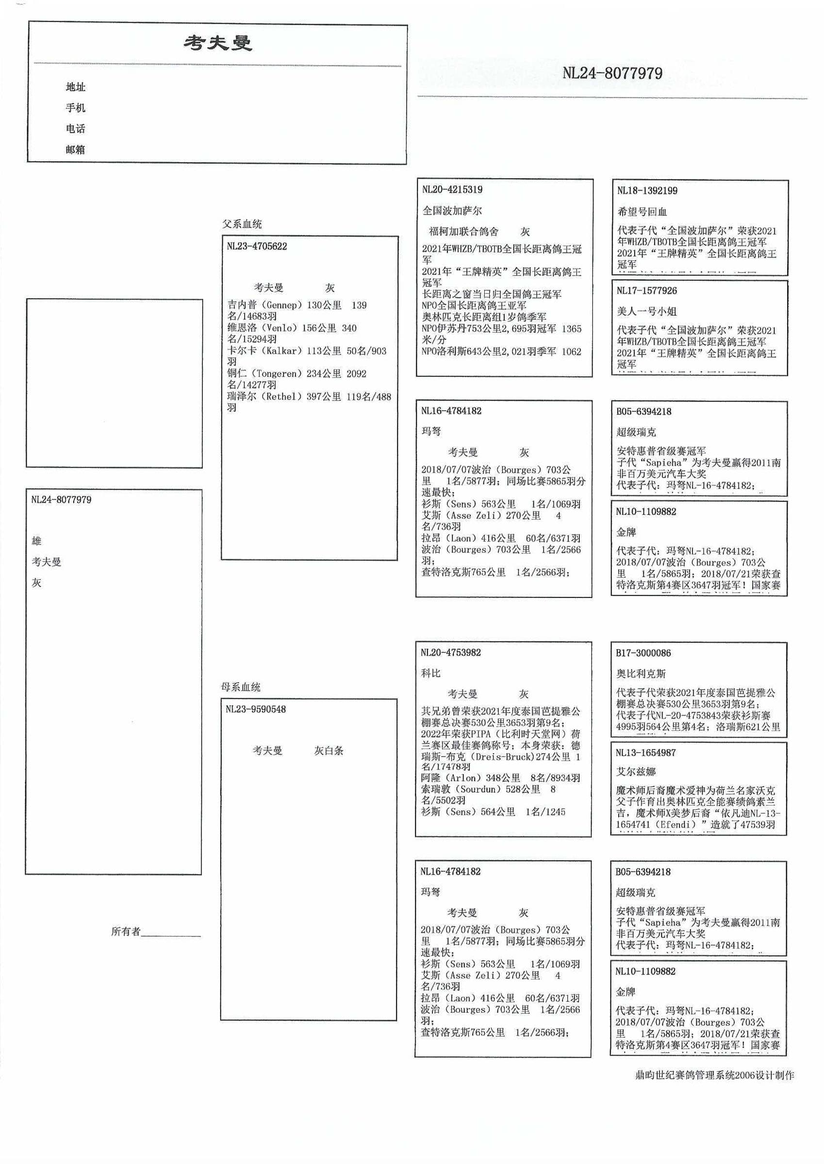 1名 全国鸽王排名 比利时天堂网评选 2022