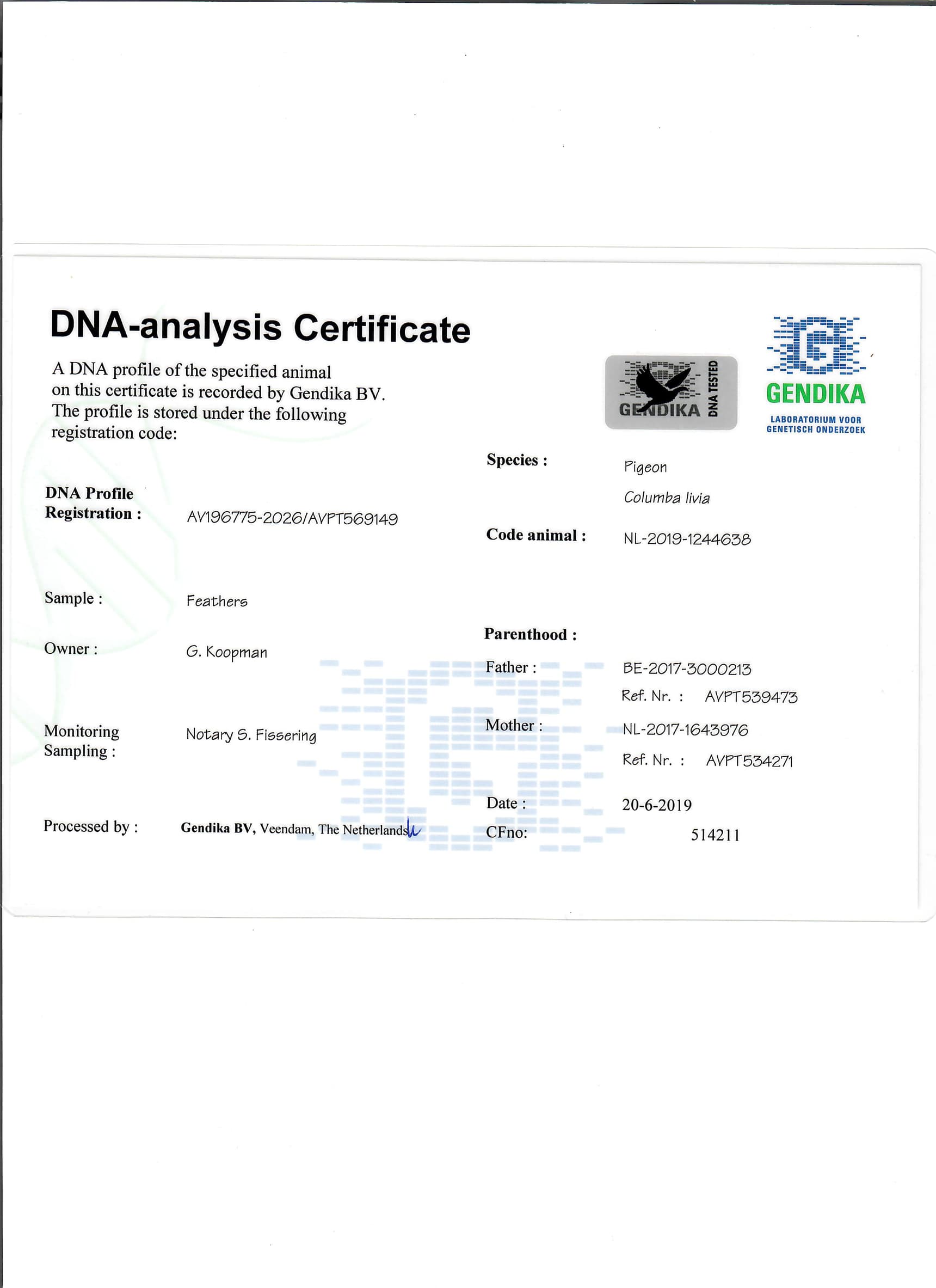 (“耐克” 的祖母-1名 国家级 波治 28,078羽 瑞克.贺曼斯 - 和 奥林匹克鸽“齐亚拉)