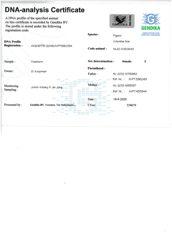 “詹姆士传奇”(1名 北京开创鸽王冠军,拍卖售价约278万欧元