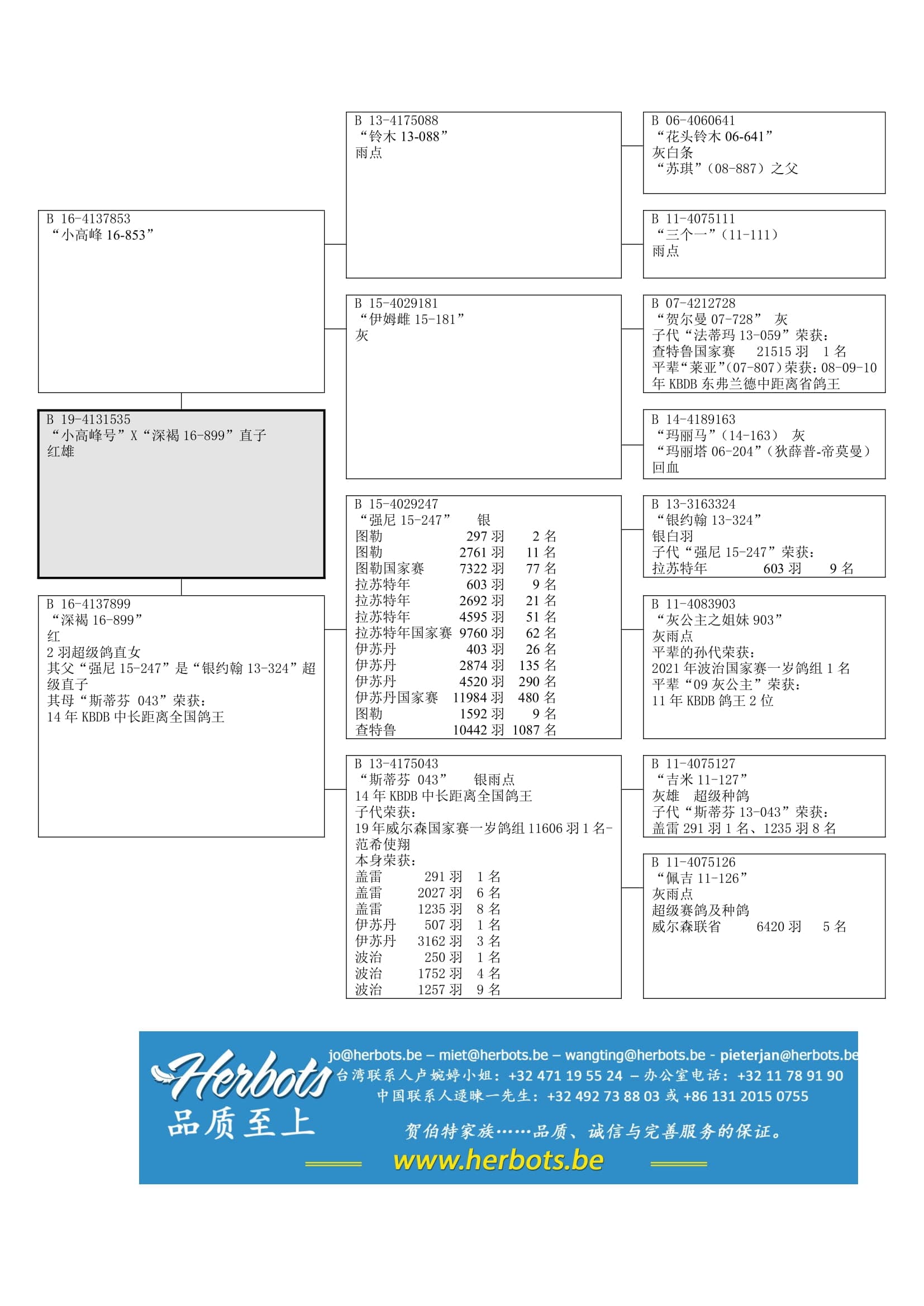 荣获: 14年KBDB中长距离鸽王全国14位 – 伊苏丹 3,162羽3名- 波治 1,792羽4名 – 拉苏特年 4,161羽9名 - 查特鲁 3,380羽18名 – 亚精顿 3,297羽13名 - 盖雷 9,815羽26名