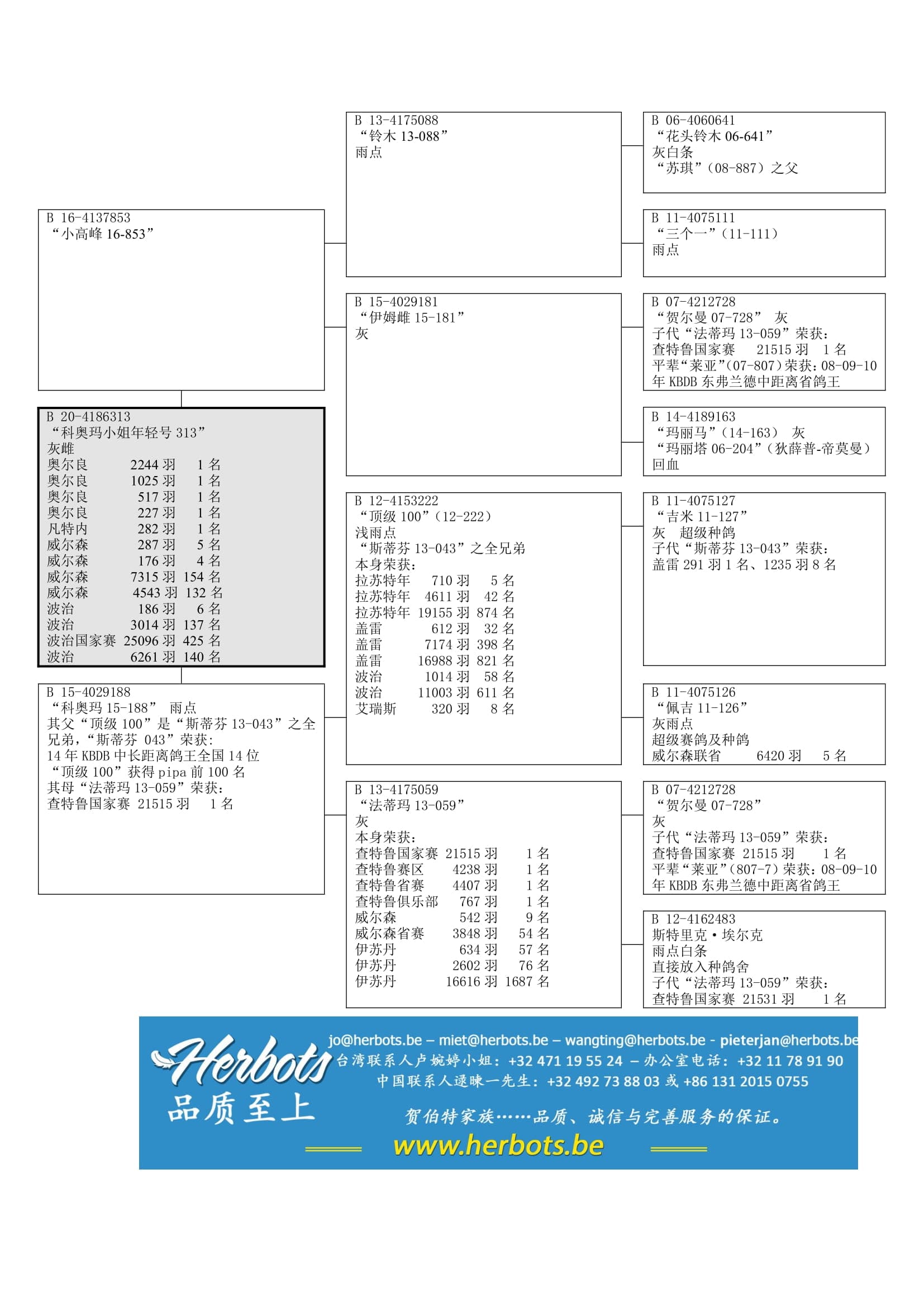 顶级雌鸽“斯蒂芬 043” (14年KBDB中长距离鸽王全国14位)之全兄弟