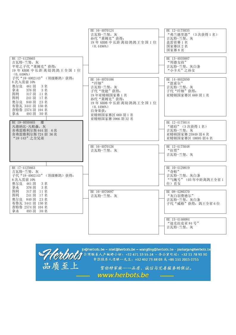 自身荣获:舍弗雷维利尔斯644羽6名“莱姆克之父之兄弟”(19年KBDB幼鸽鸽王全国1位)直子
