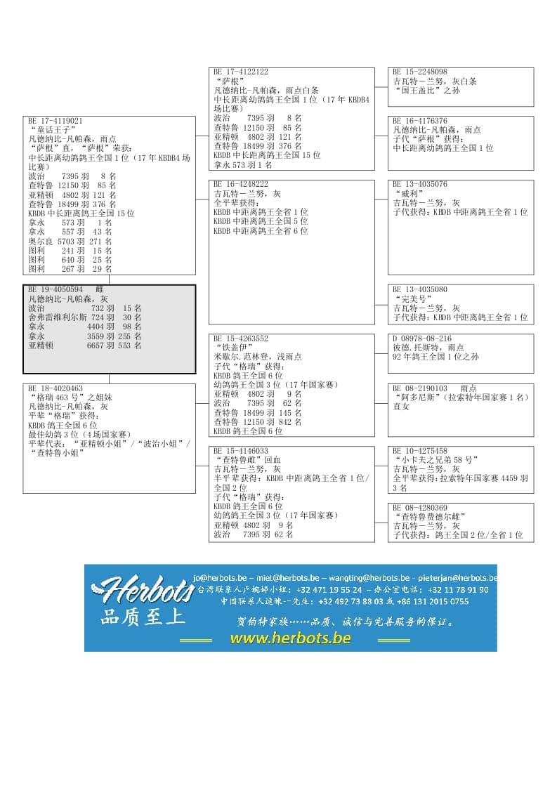 波治 732羽 15名拿永联省 4404羽 98名血统:2羽全国鸽王“萨根”/“格瑞”