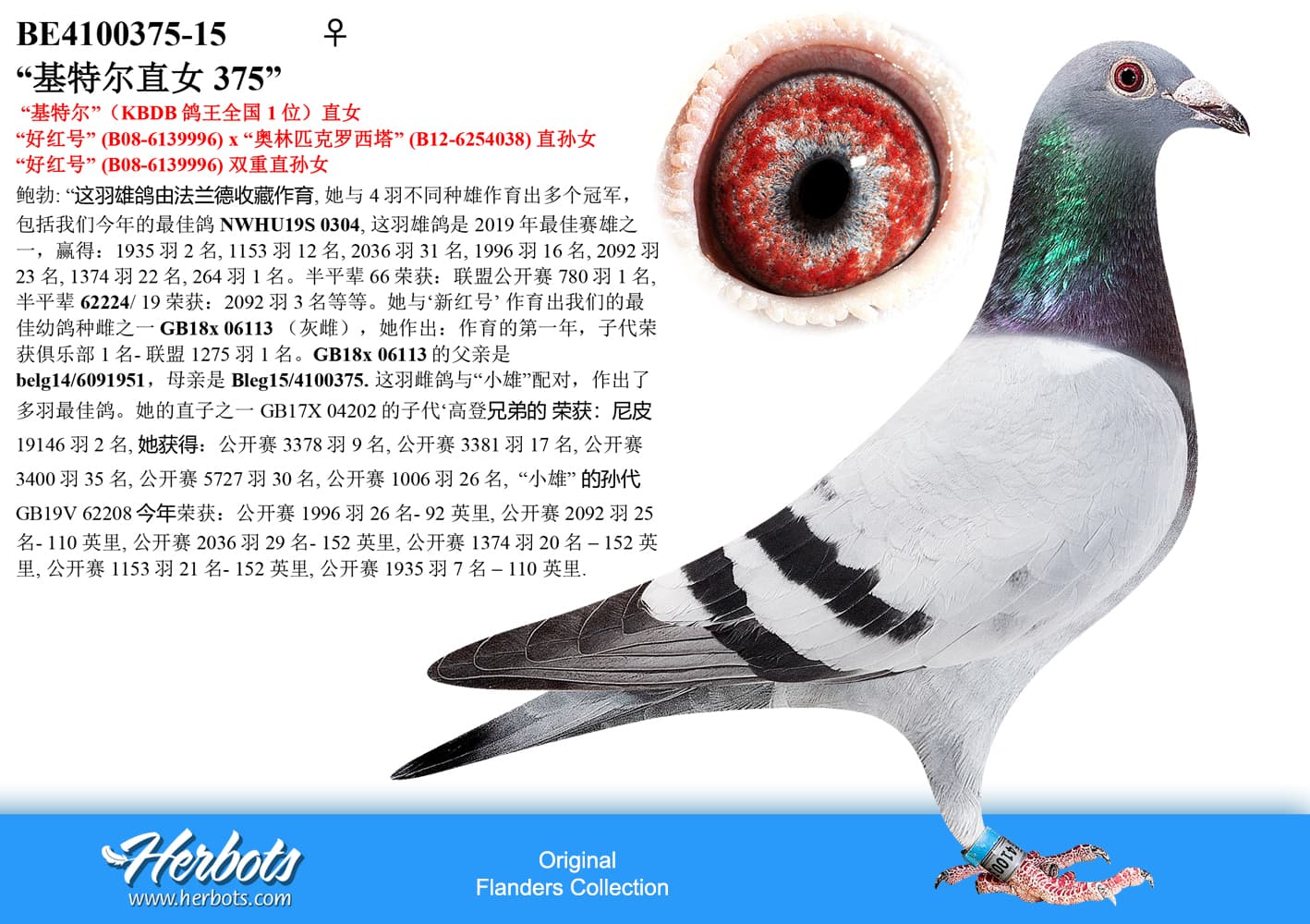 “奇特尔”与其半平辈作育之孙“奇特尔”荣获:13 年KBDB 短距离幼鸽鸽王全国1 位“萨根”与其半平辈作育之孙 “萨根”荣获:13 年KBDB 短距离老鸽鸽王全国1 位