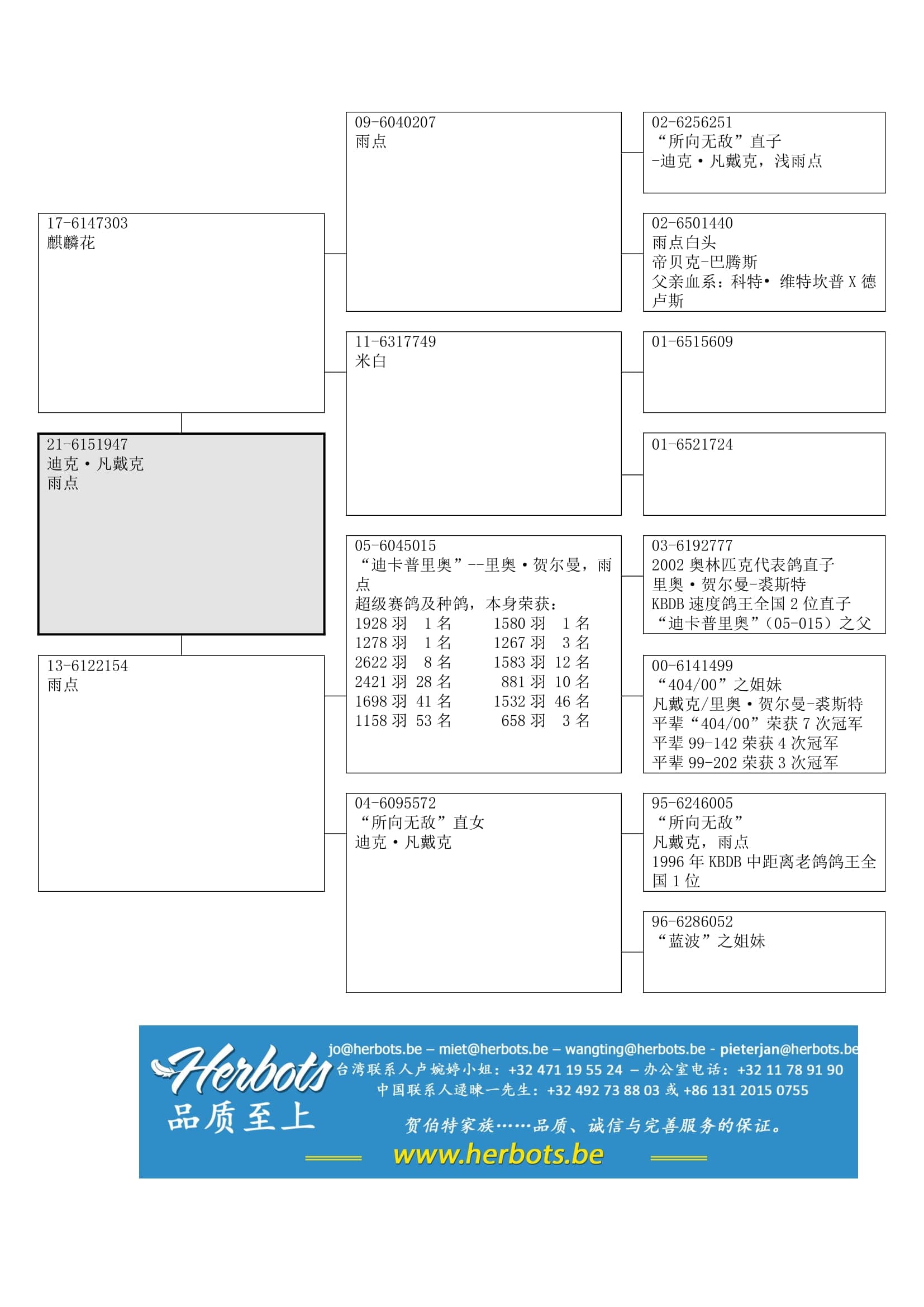 荣获魁夫兰: 1,928羽1名 – 1,580羽1名 – 1,278羽1名- 1,267羽3名 – 658羽3名 – 2,622羽8名