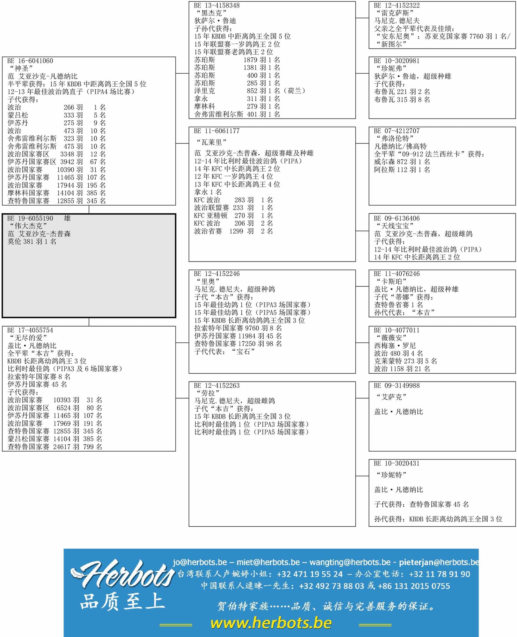 莫伦俱乐部317公里381羽1名安特卫普联盟1713羽33名父亲:BE16-6041060“神圣”半平辈获得:16年KBDB中距离鸽王全国5位母亲:BE17-4055754“无尽的爱”--盖比·凡德纳比原舍全平辈“本吉”获得:15年KBDB长距离鸽王全国3位