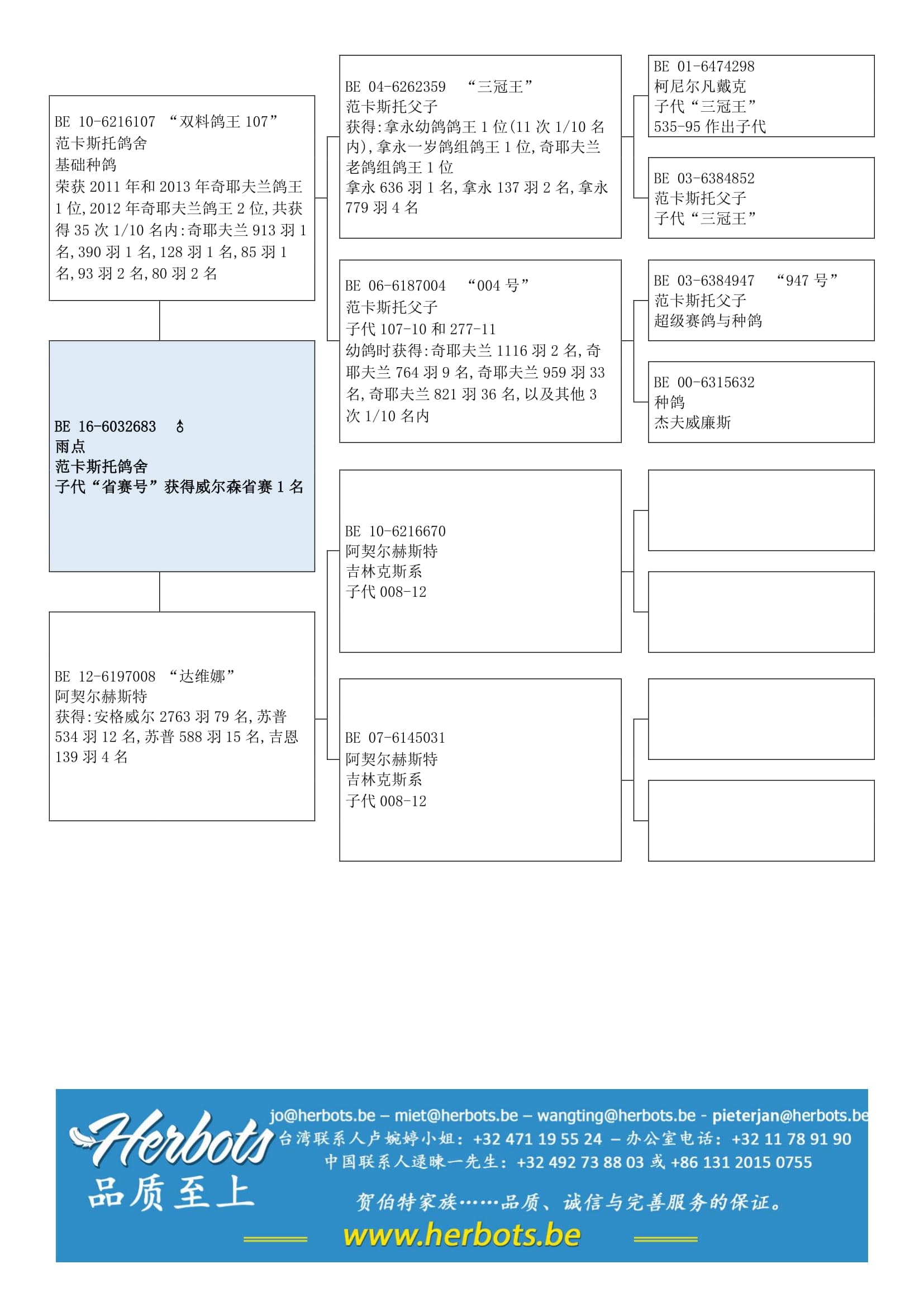荣获: 2011 & 2013年奇耶夫兰俱乐部鸽王1位-2012年奇耶夫兰俱乐部鸽王2位–4次1名