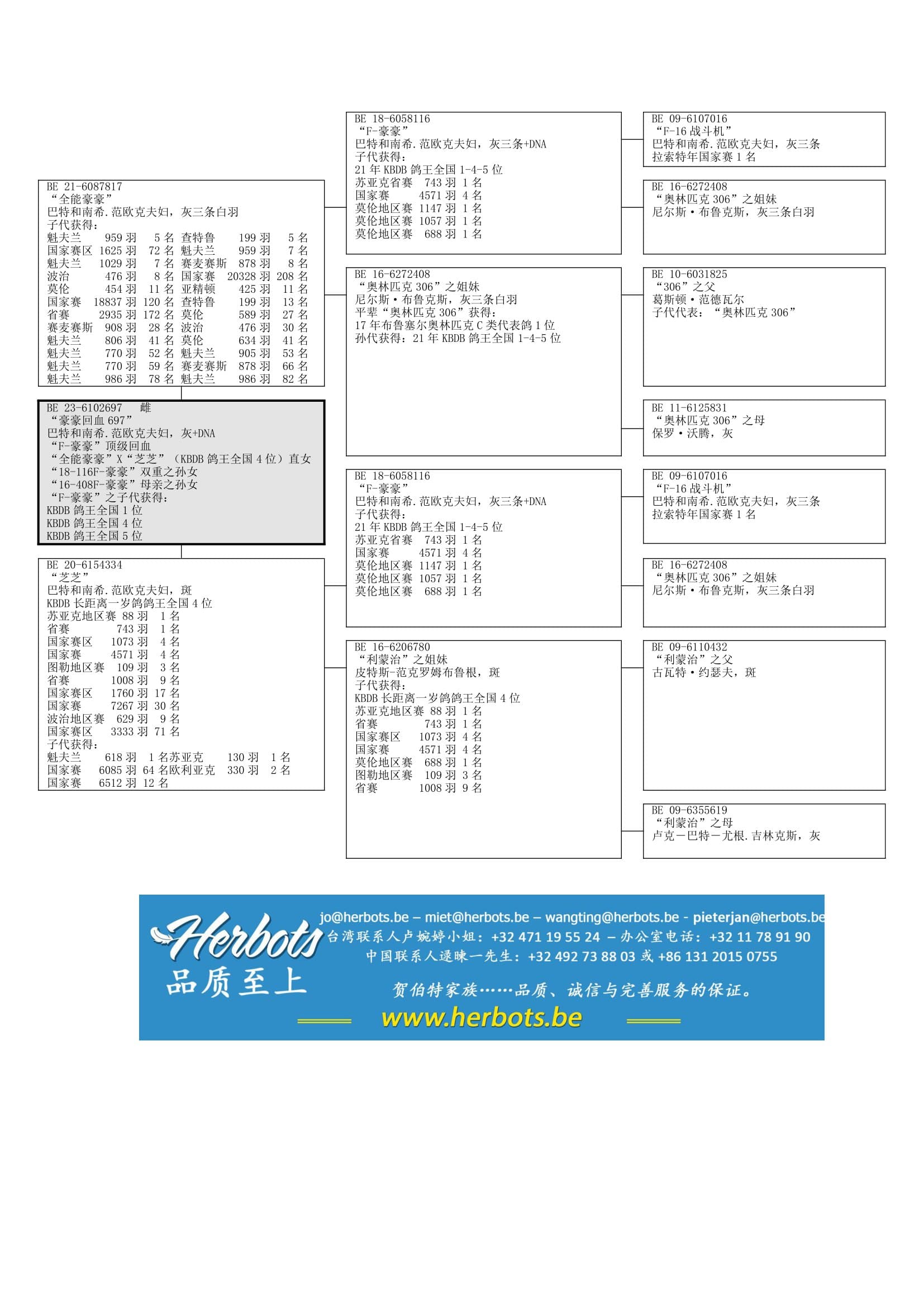 冠军种鸽 “F-豪豪”x “利蒙治之姐妹” (血统:古瓦特X吉林克斯)直女
