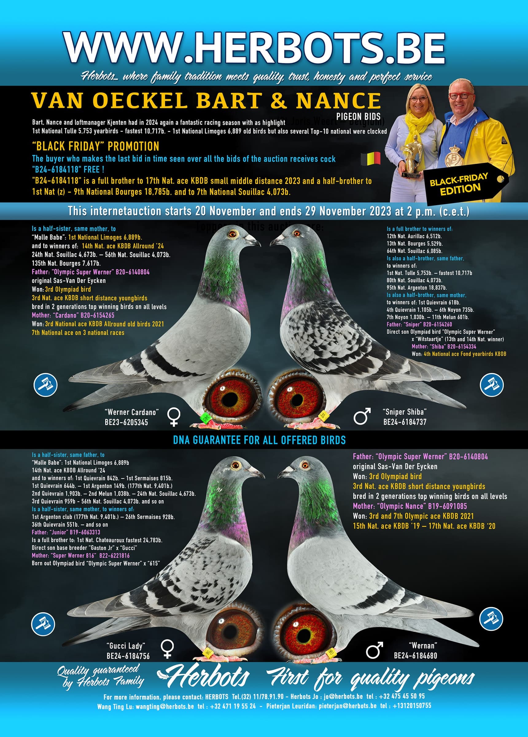 2024年,巴特(Bart), 南希(Nance)以及鸽舍经理肯腾(Kjenten)再次璀璨耀眼傲鸽坛,囊获2次国家赛冠军!他们获得: