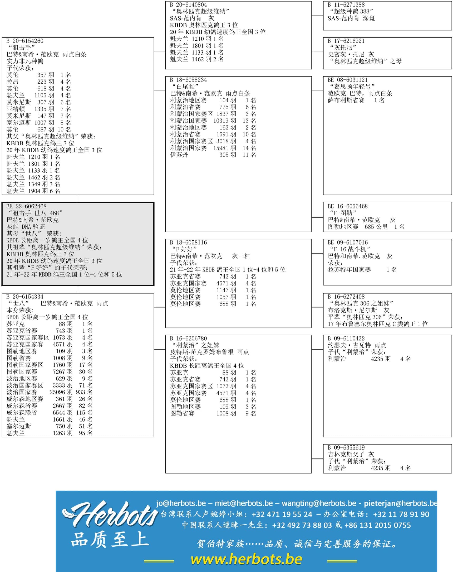 冠军种鸽 “F好好”x “利蒙治之姐妹” (鸽系: 古瓦特 x 吉林克斯 ) 直女