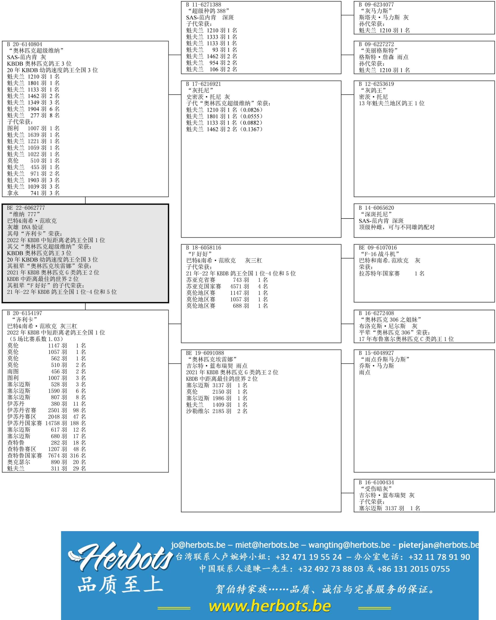 子代荣获: 图利 1,007羽1名 – 魁夫兰 1,639羽1名 – 魁夫兰 1,221羽1名 – 魁夫兰 1,059羽1名 - 魁夫兰 1,022羽1名 – 莫伦 510羽1名 – 魁夫兰455羽1名 – 魁夫兰 971羽2名 – 魁夫兰 1,903羽3名 - 魁夫兰 1,039羽3名 – 拿永 741羽3名