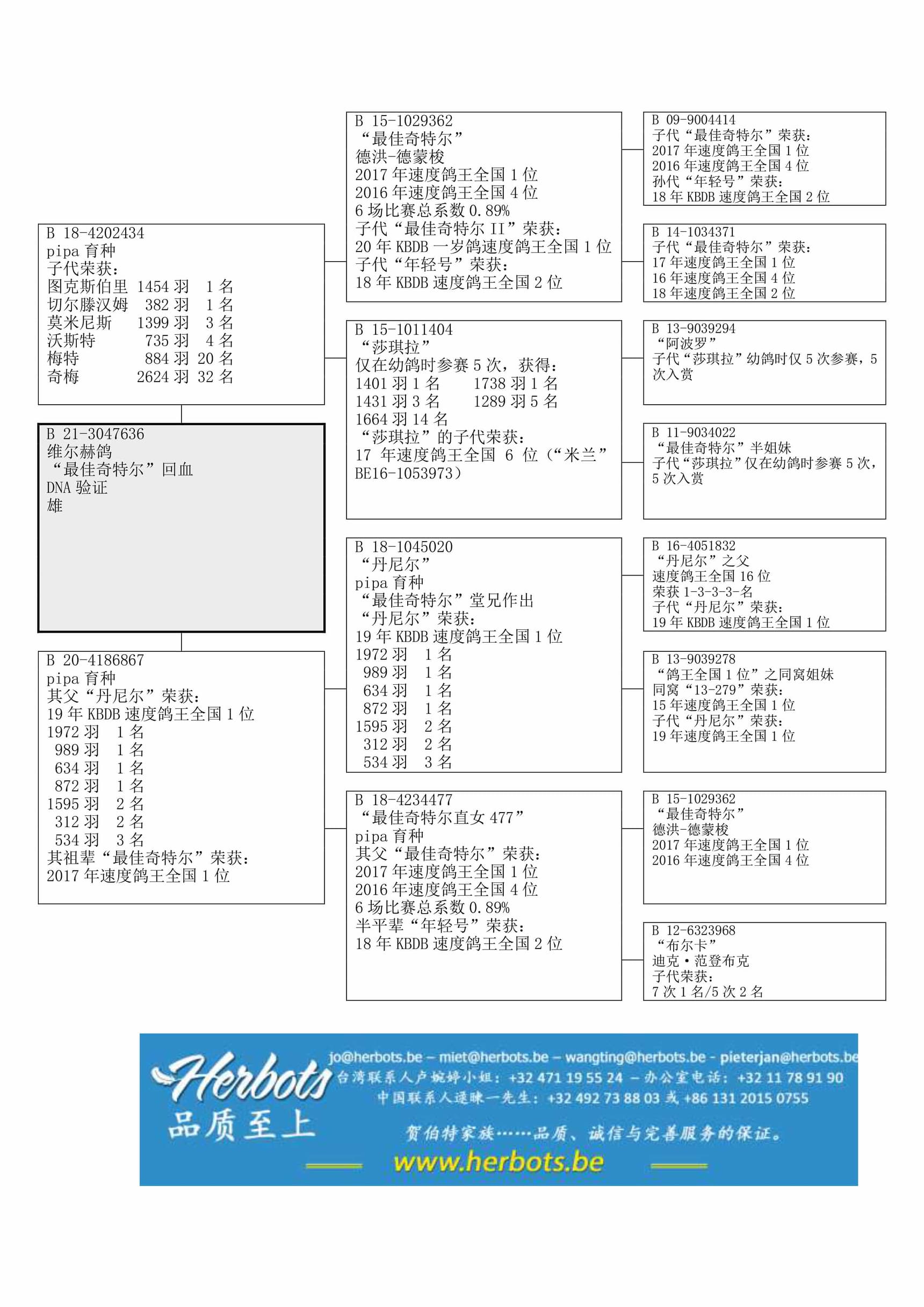 “最佳奇特尔 II”: 20年KBDB一岁鸽速度鸽王全国1位 “年轻号”: 18年KBDB一岁鸽速度鸽王全国2位