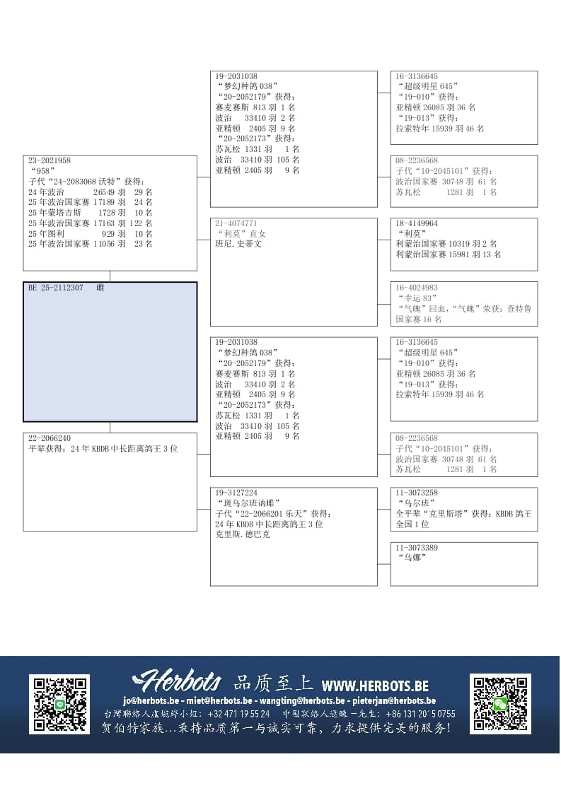 半平辈 (同父) 获得:25年最佳一岁鸽