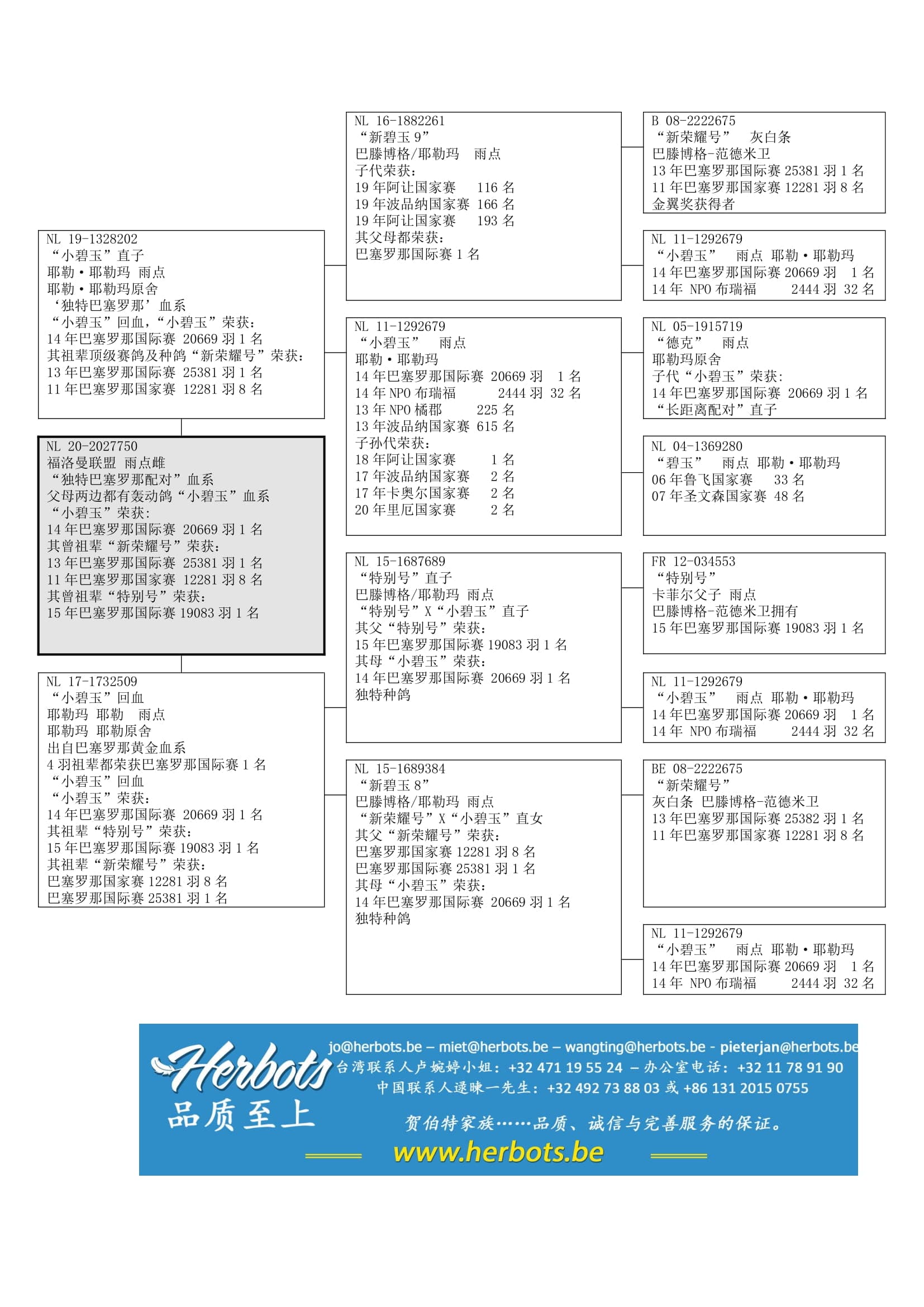 “小碧玉”(巴塞罗那国际赛 20,669羽1名)双重直孙女