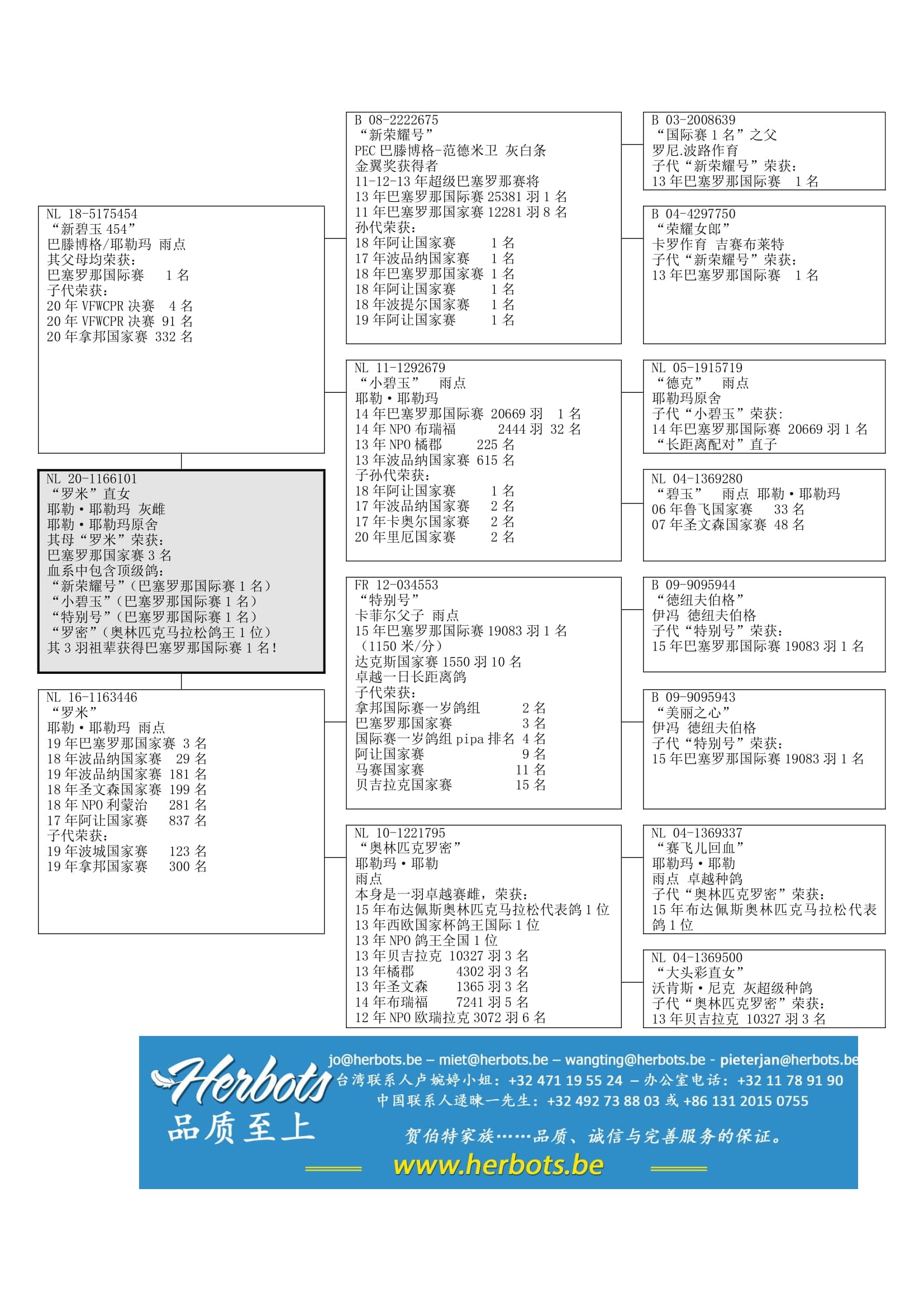 荣获: 巴塞罗那国际赛 25,381羽1名
