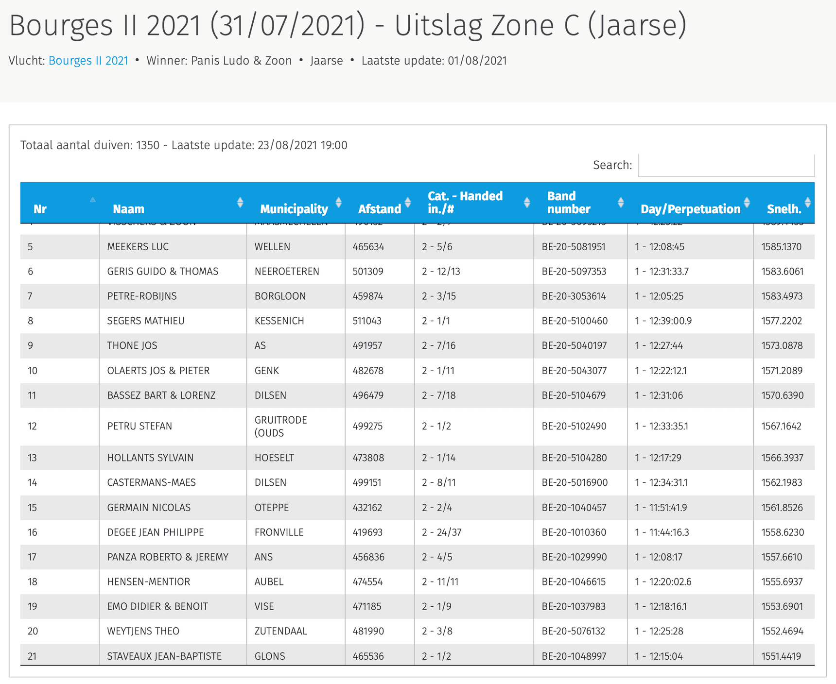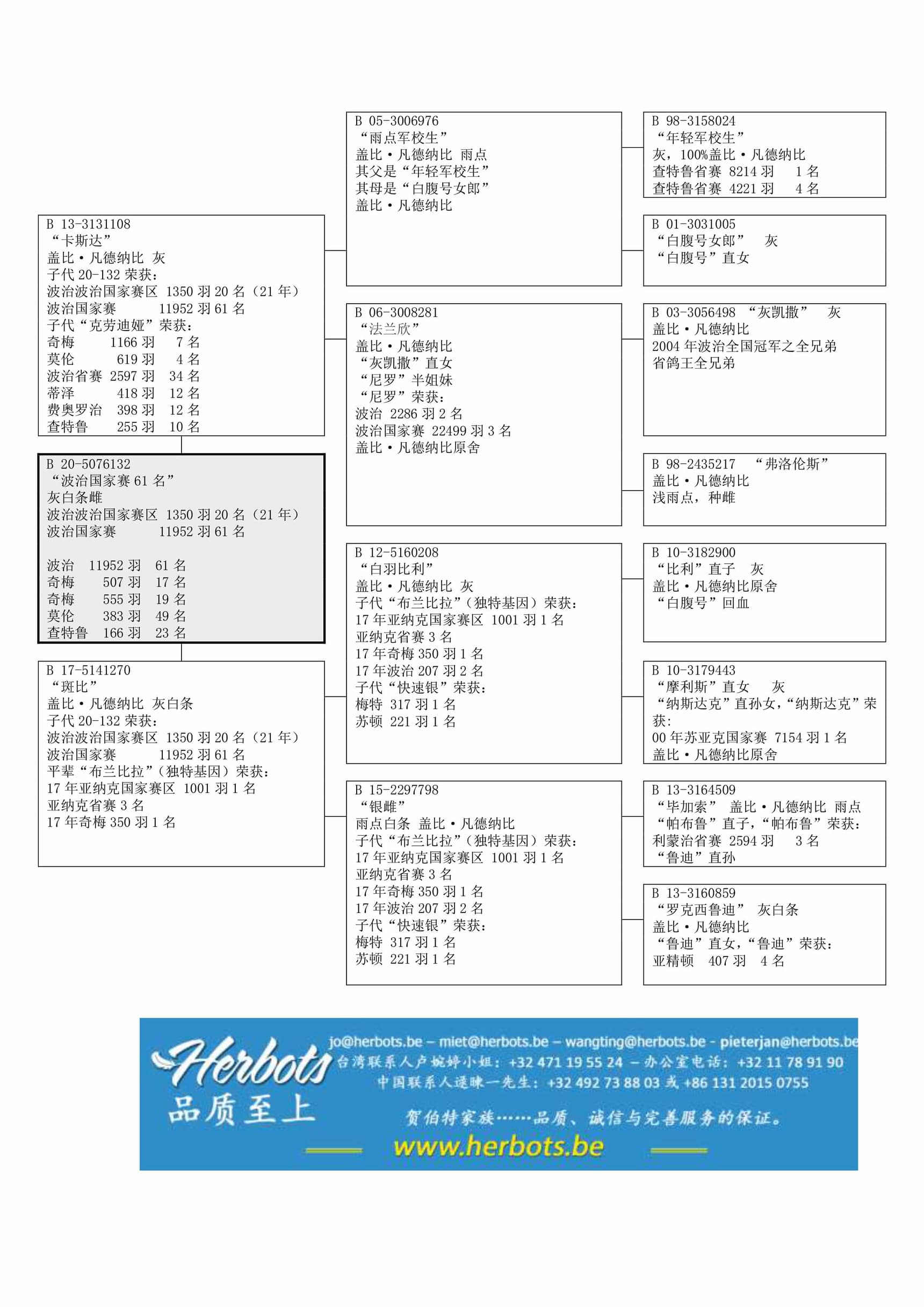 子代 “克劳迪娅”荣获:莫伦 619羽4名 - 奇梅1,166羽7名 - 蒂泽 418羽12名– 查特鲁255羽10名 - 费奥罗治 398羽12名 - 波治 2,597羽34名)