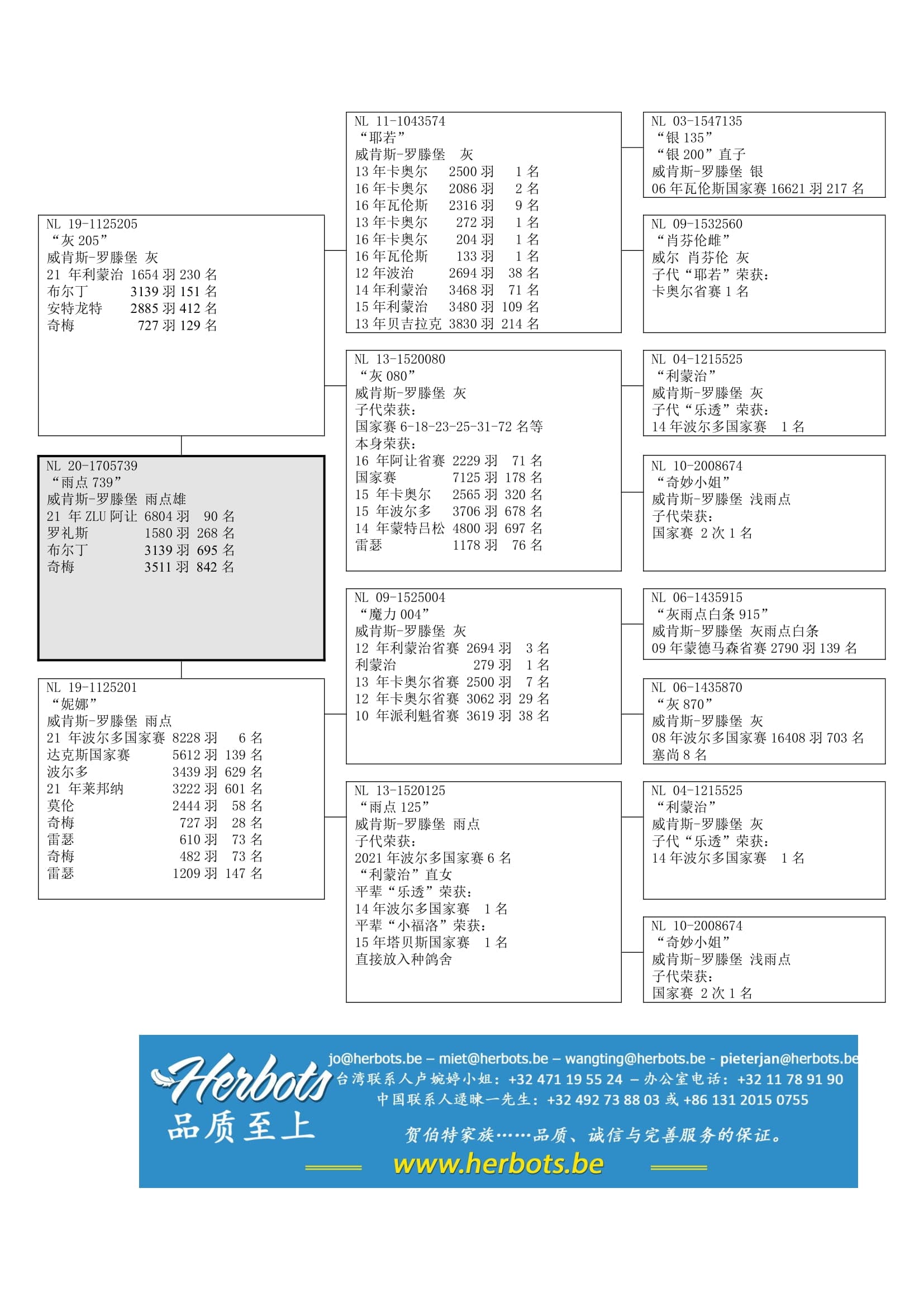 21年波尔多国家赛 8,228羽6名 - 奇梅 727羽 28名 - 莫伦2,444羽  58名 - 达克斯国家赛 5,162羽139名