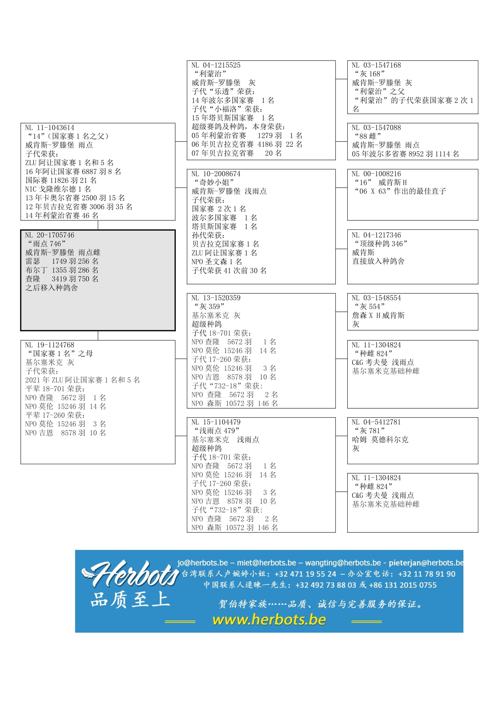 “泰德”: 阿让国家赛1名/国际赛 17,759羽17名