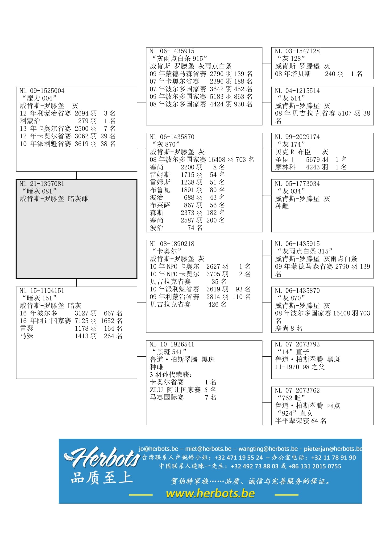 卡奥尔省赛 2,627羽1名 – 卡奥尔省赛 3,705羽2名 - 贝吉拉克省赛35名– 派利魁省赛 3,619羽93名 - 利蒙治省赛 2,814羽110名