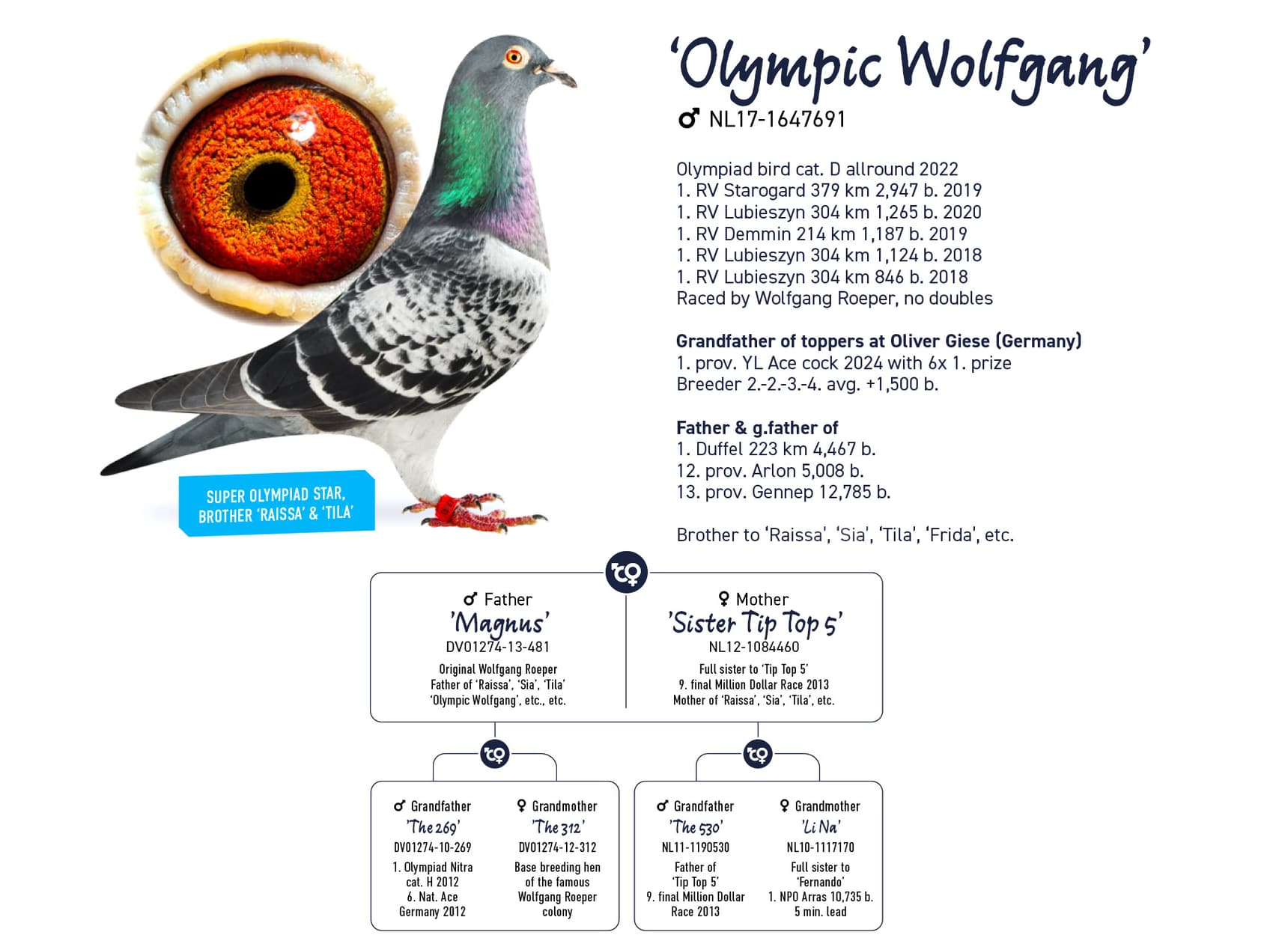 荣获(里波使翔) : 2022年奥拉达奥林匹克鸽王