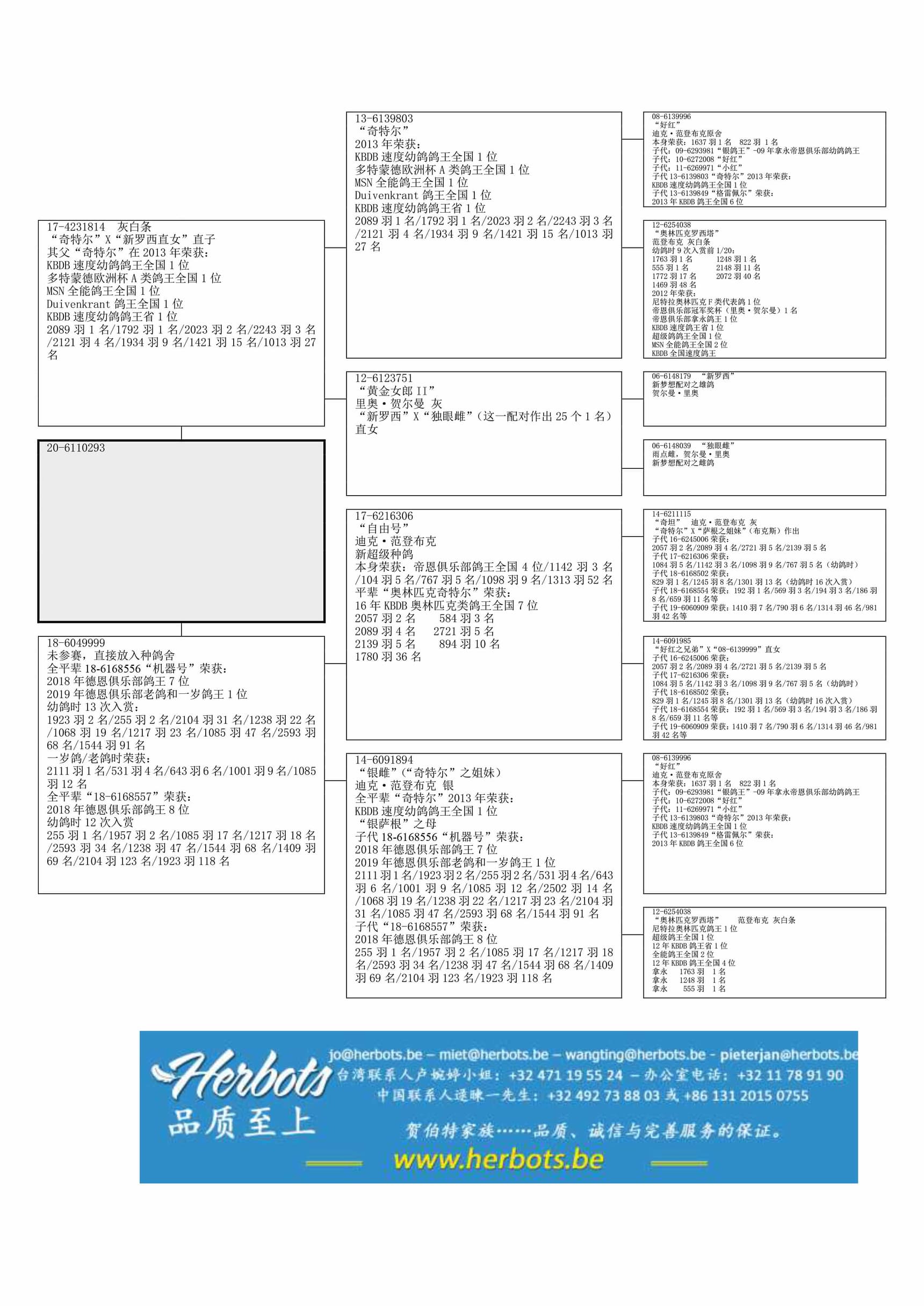 “奇特尔”直孙. “奇特尔”荣获:KBDB中距离鸽王全国1位其祖辈“黄金女郎 II”是“新罗西” x “独眼雌”直女其祖辈“自由号”荣获:帝恩俱乐部鸽王4位 – 1,142羽3名 - 1,084羽5名 – 767羽5名 – 1,098羽9名