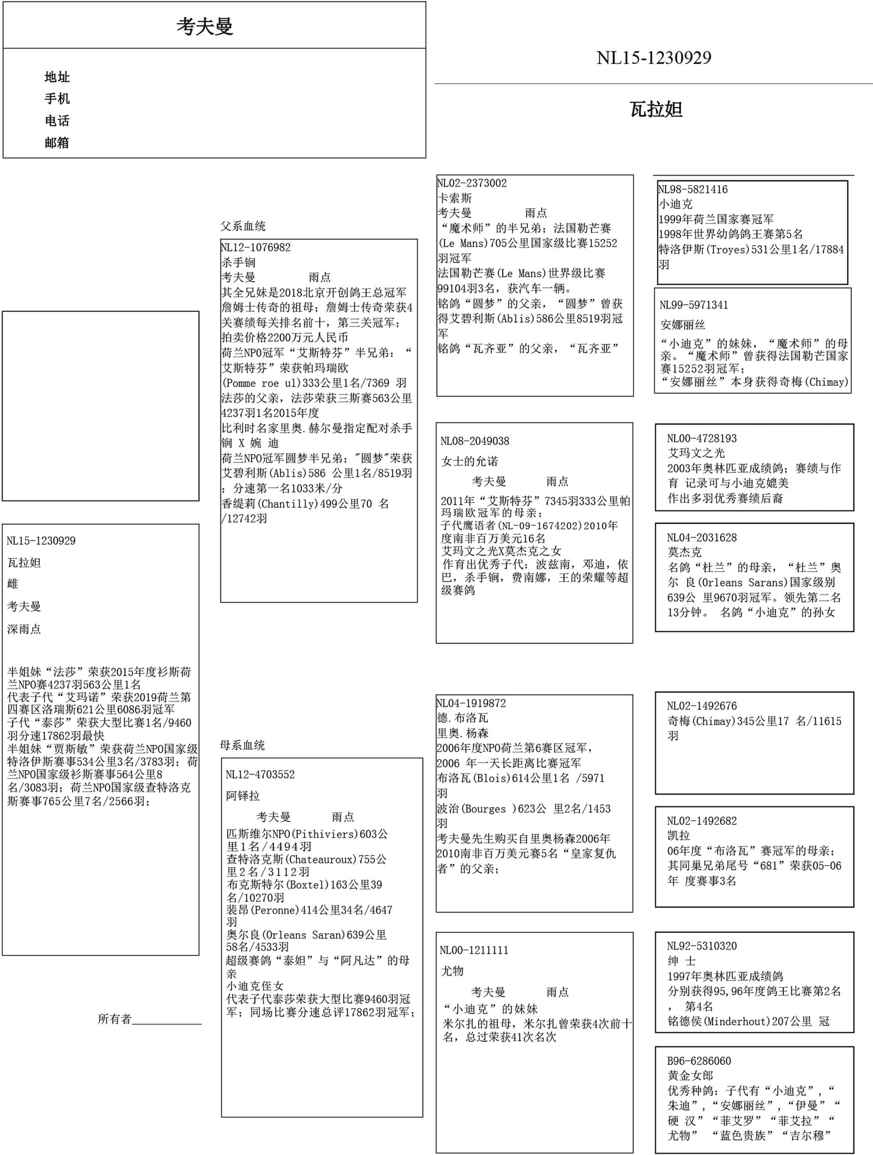 荣获2019荷兰第四赛区洛瑞斯621公里6086羽冠军.