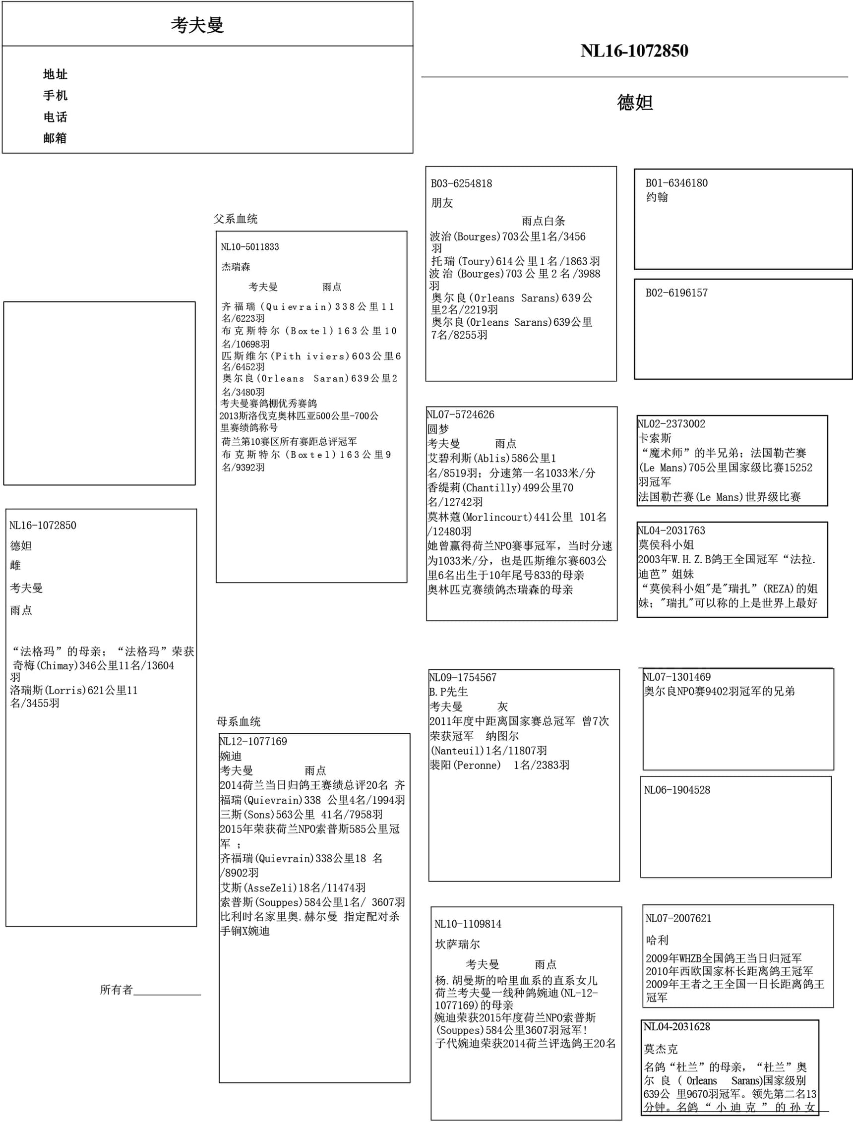 代表子代为考夫曼鸽舍作育出多羽优秀赛鸽“达尼拉”, “米达斯之吻”, “坎坎”, “菲德尔”