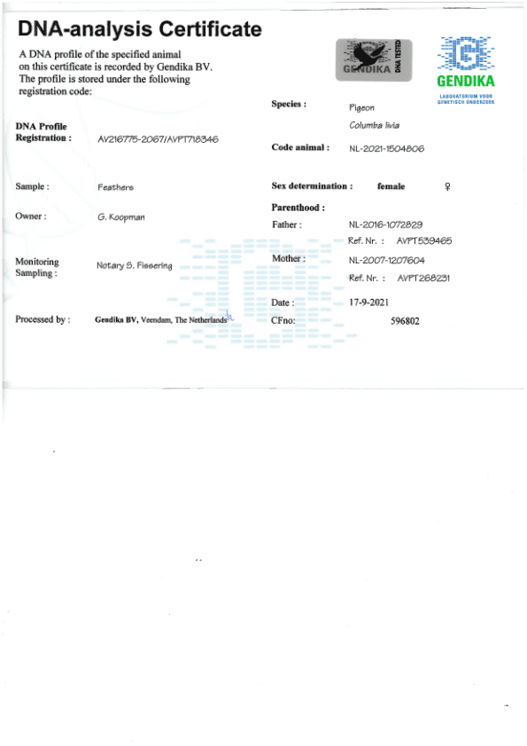 代表孙代:“斯凡” (1名 NPO 衫斯 4,995羽)