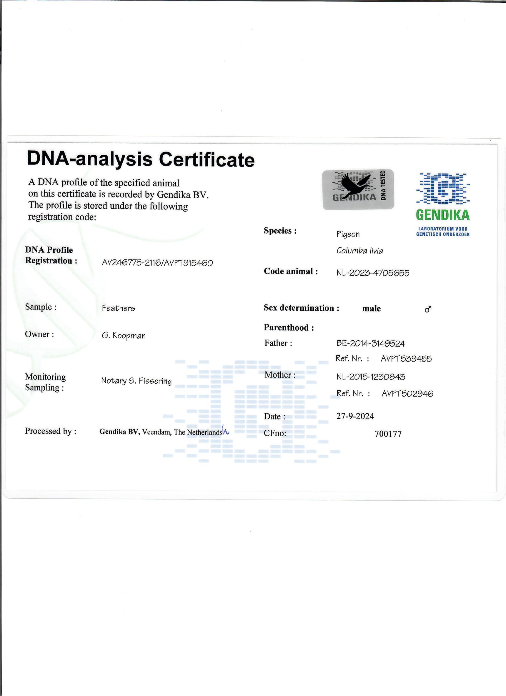 父亲: “皮耶伦 524” B14-3149524 –诺尔.皮耶伦原舍