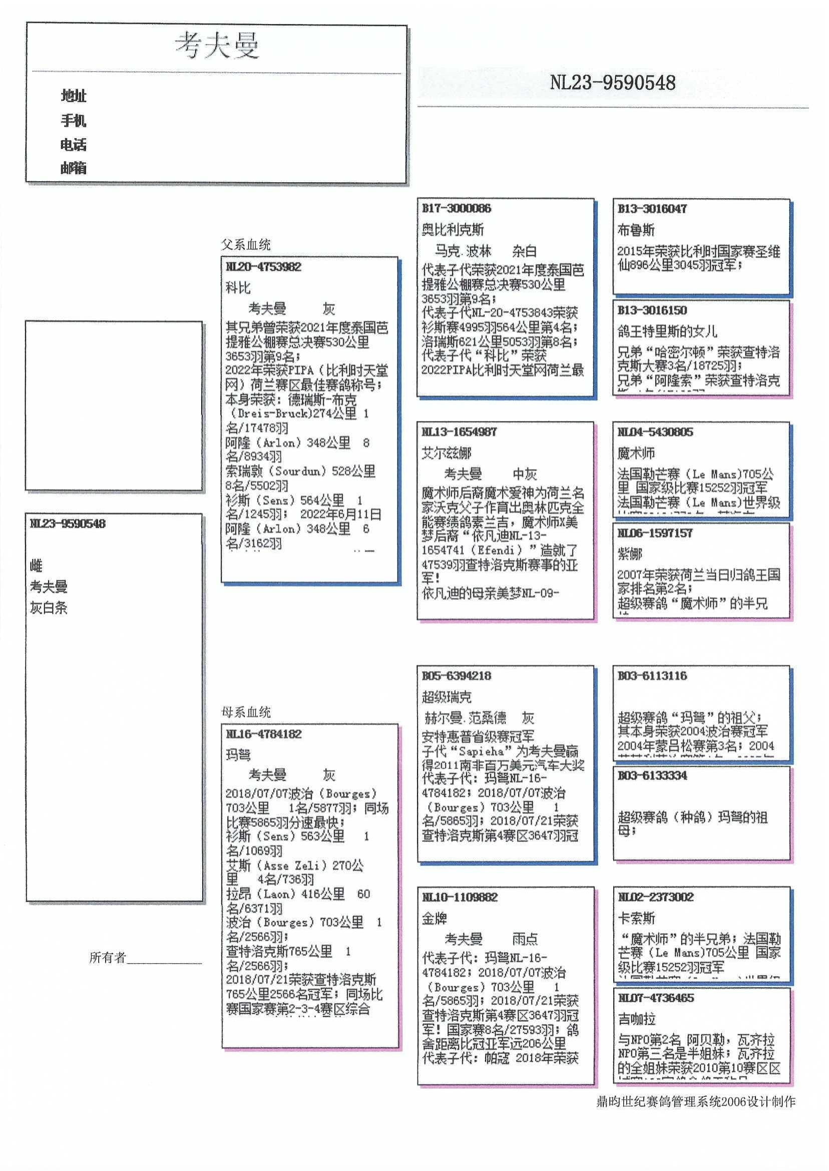 “艾玛蒂” (4名 国家级鸽王 WHZB/TBOTB)