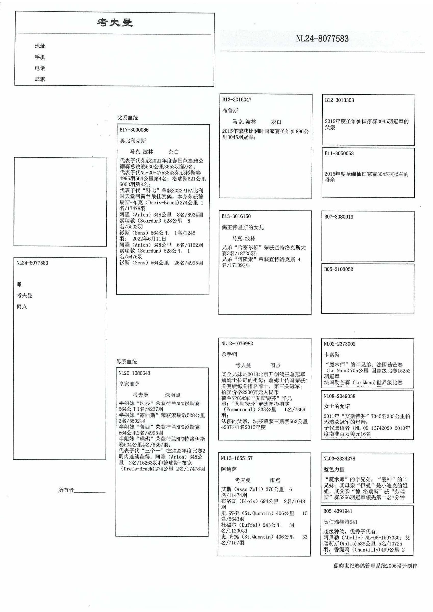 “鸽王特里斯的女儿” B13-3016150
