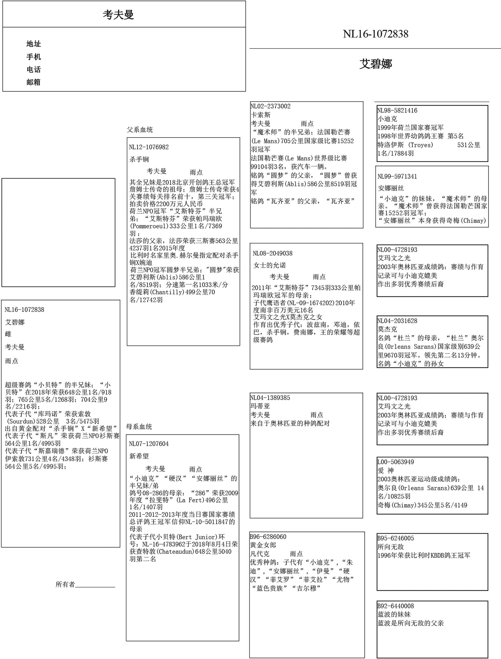 幼鸽雌鸽组 NPO冠军杯3名21年