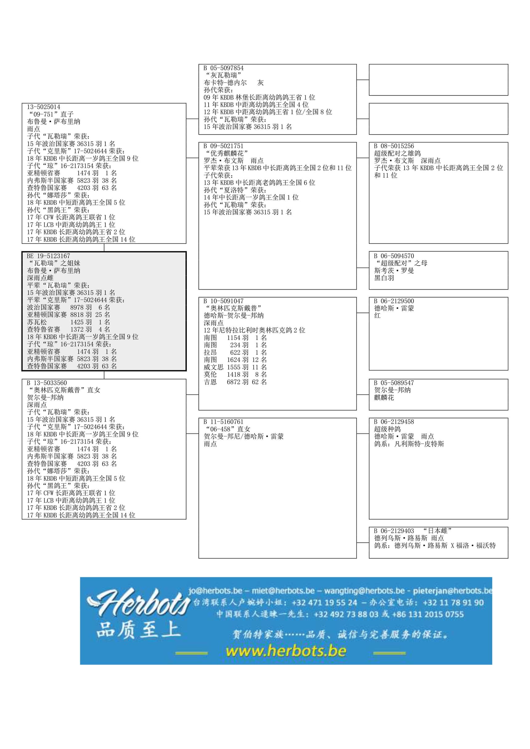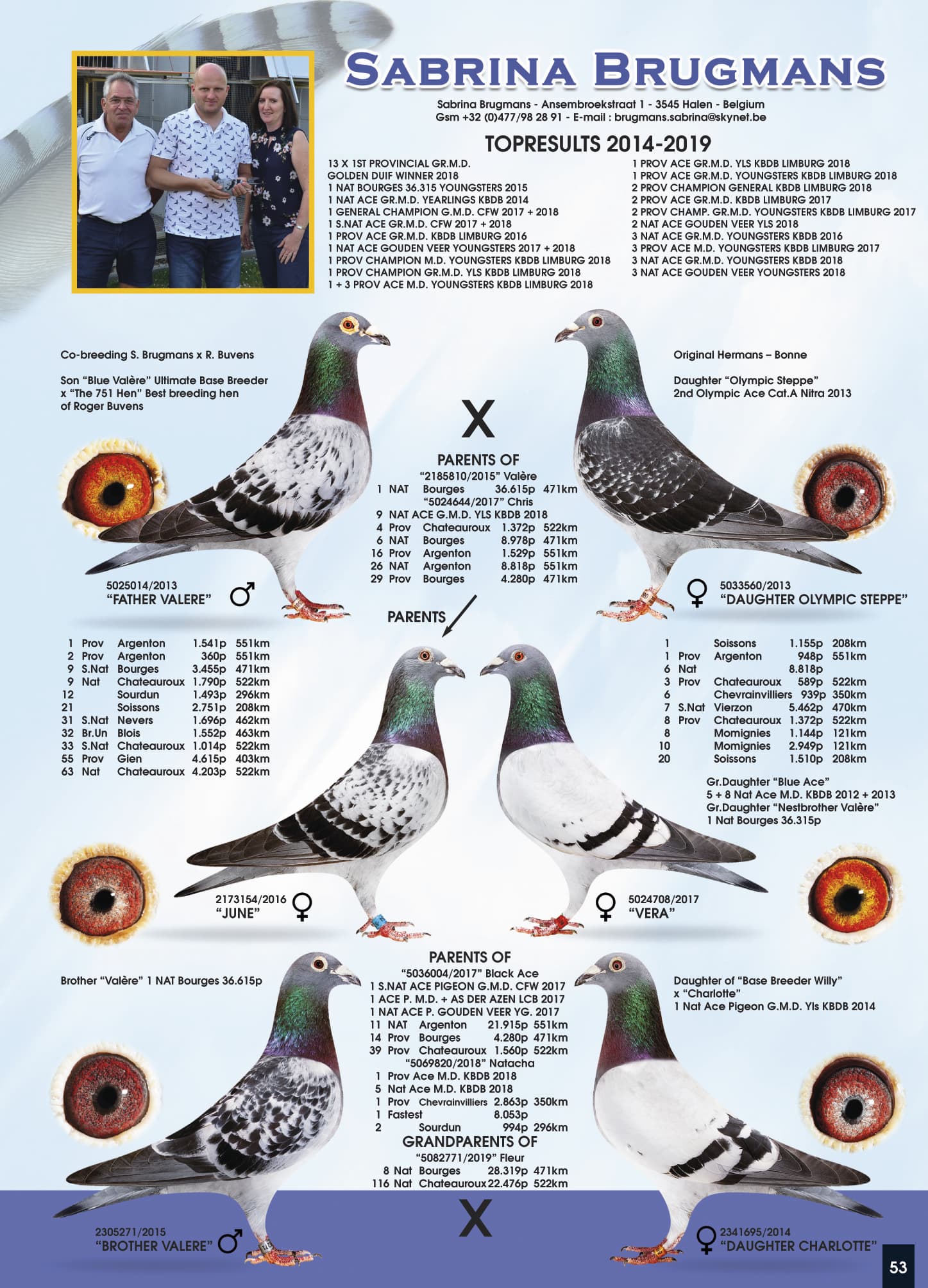 全平辈 “瓦勒瑞”荣获:波治国家赛 36,315羽1名全平辈 “克里斯”荣获:KBDB中长距离一岁鸽王全国9位 –国家赛6名和25名全平辈 “琼”荣获:亚精顿省赛 1,474羽1名 – 内弗斯 5,823羽38名 – 查特鲁国家赛 4,203羽63名