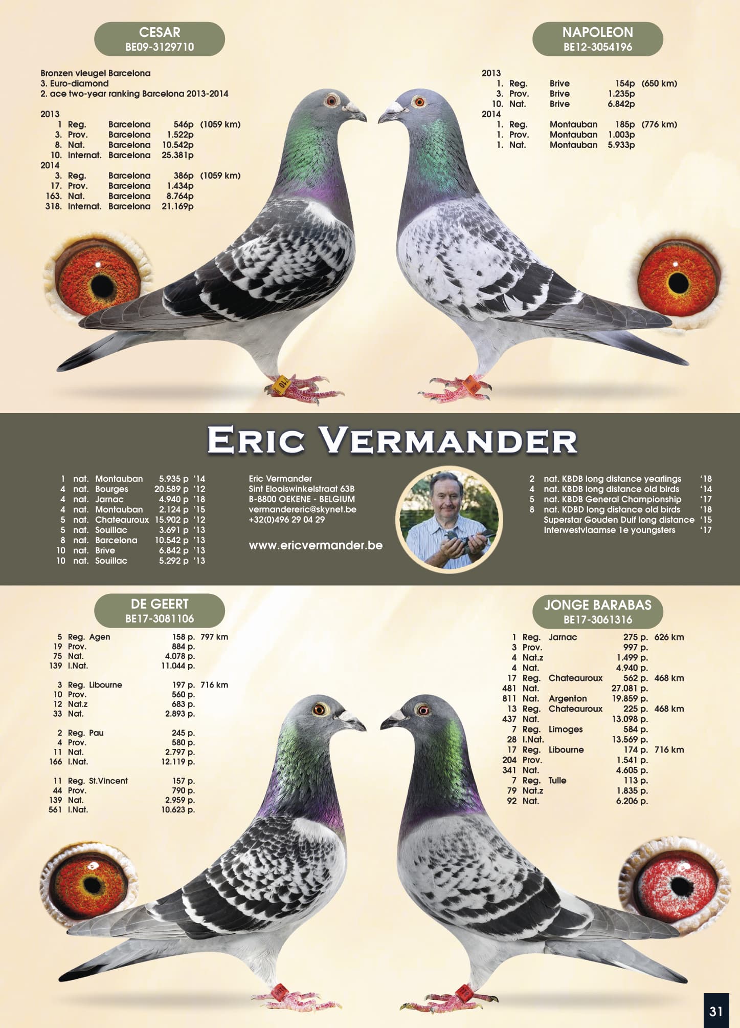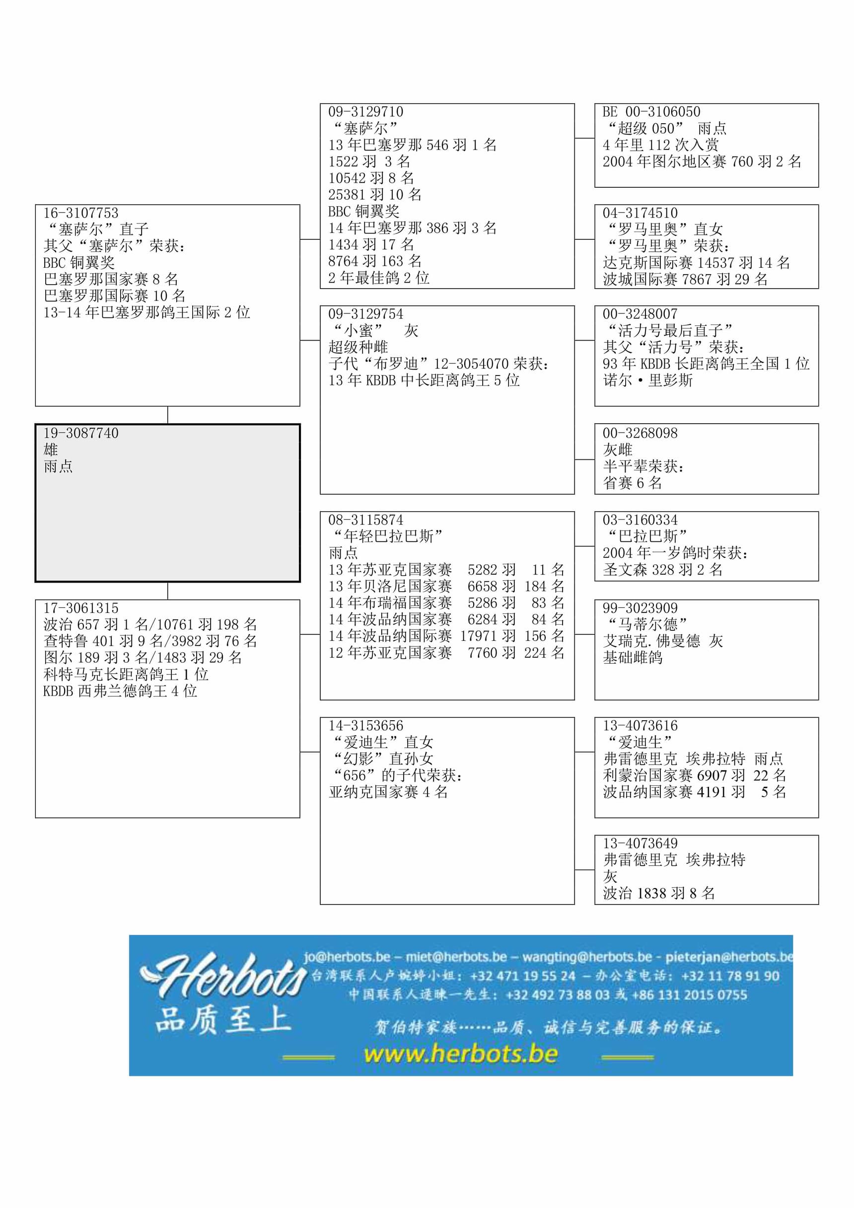 其祖辈 “塞萨尔”荣获: 巴塞罗那“金翼奖”其祖辈 “年轻巴拉巴斯”荣获: 苏亚克国家赛 5,282羽11名 – 布瑞福国家赛 5,286羽83名 – 波品纳国家赛 6,284羽84名