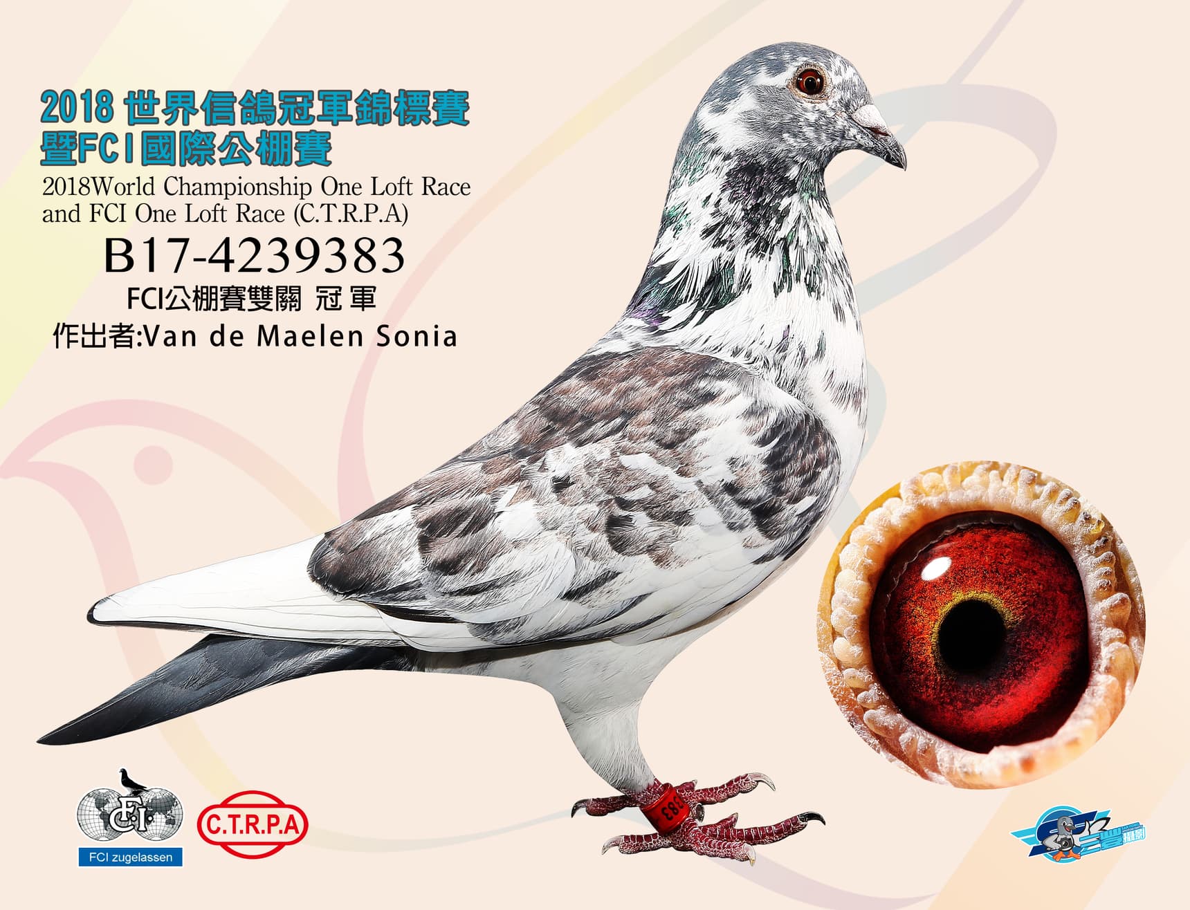 半平辈 “灰色”荣获: 2018年FCI大奖台湾鸽王1位
