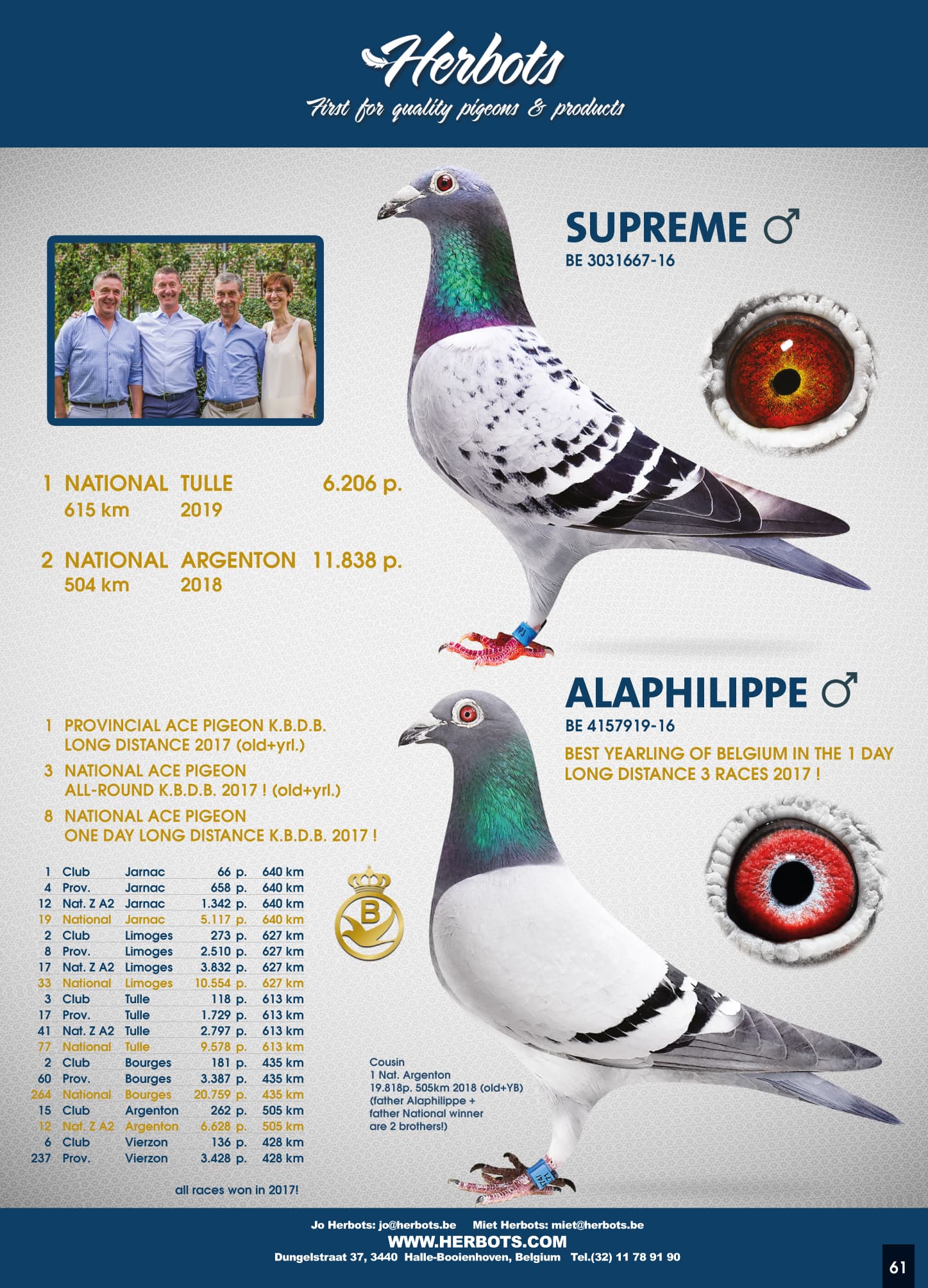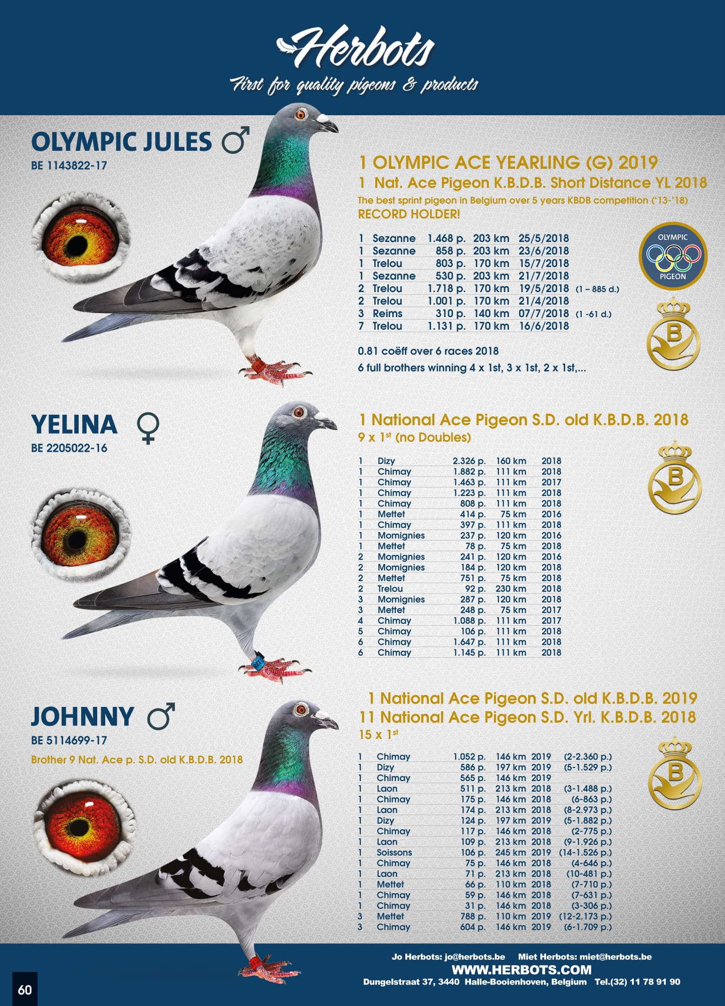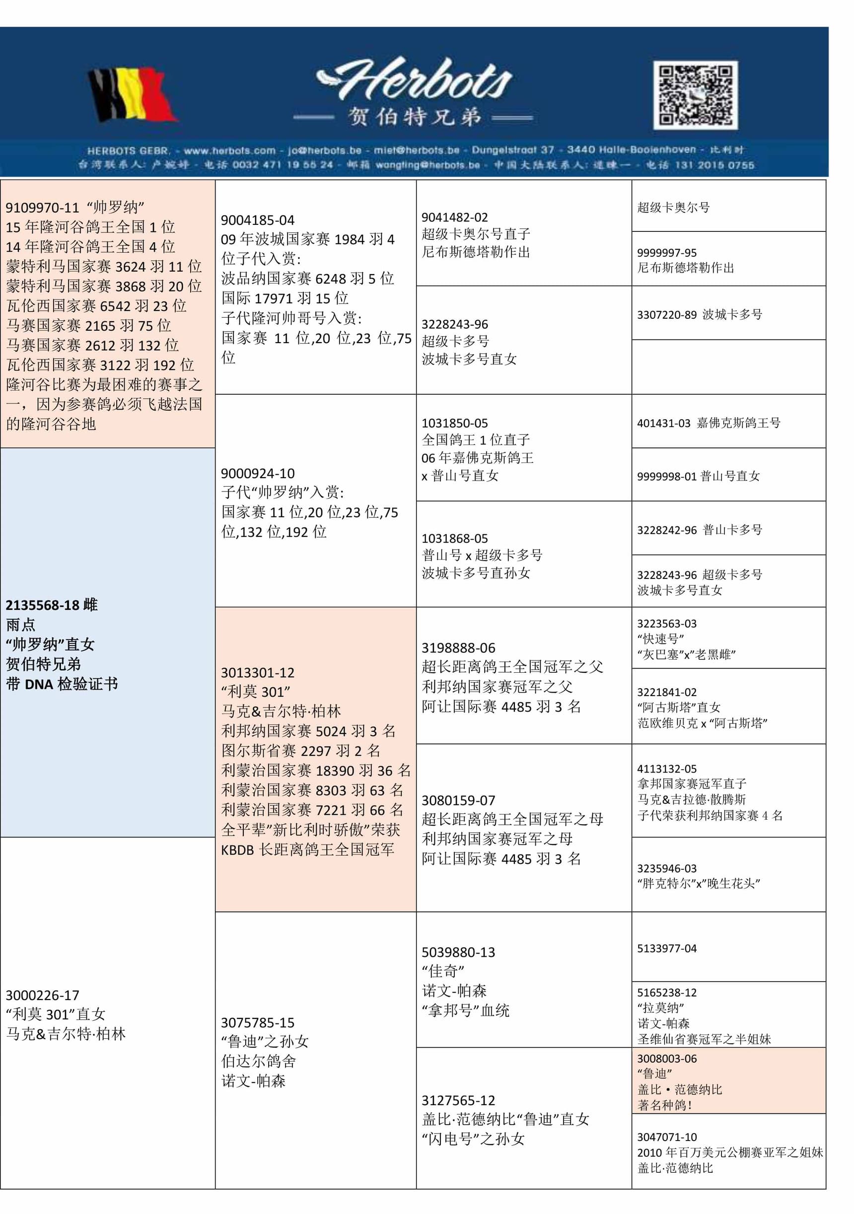 其父 “漂亮罗讷”荣获:15年罗讷谷鸽王全国1位 - 14年罗讷谷鸽王全国4位 – 国家赛11名,20名, 23名和 75名