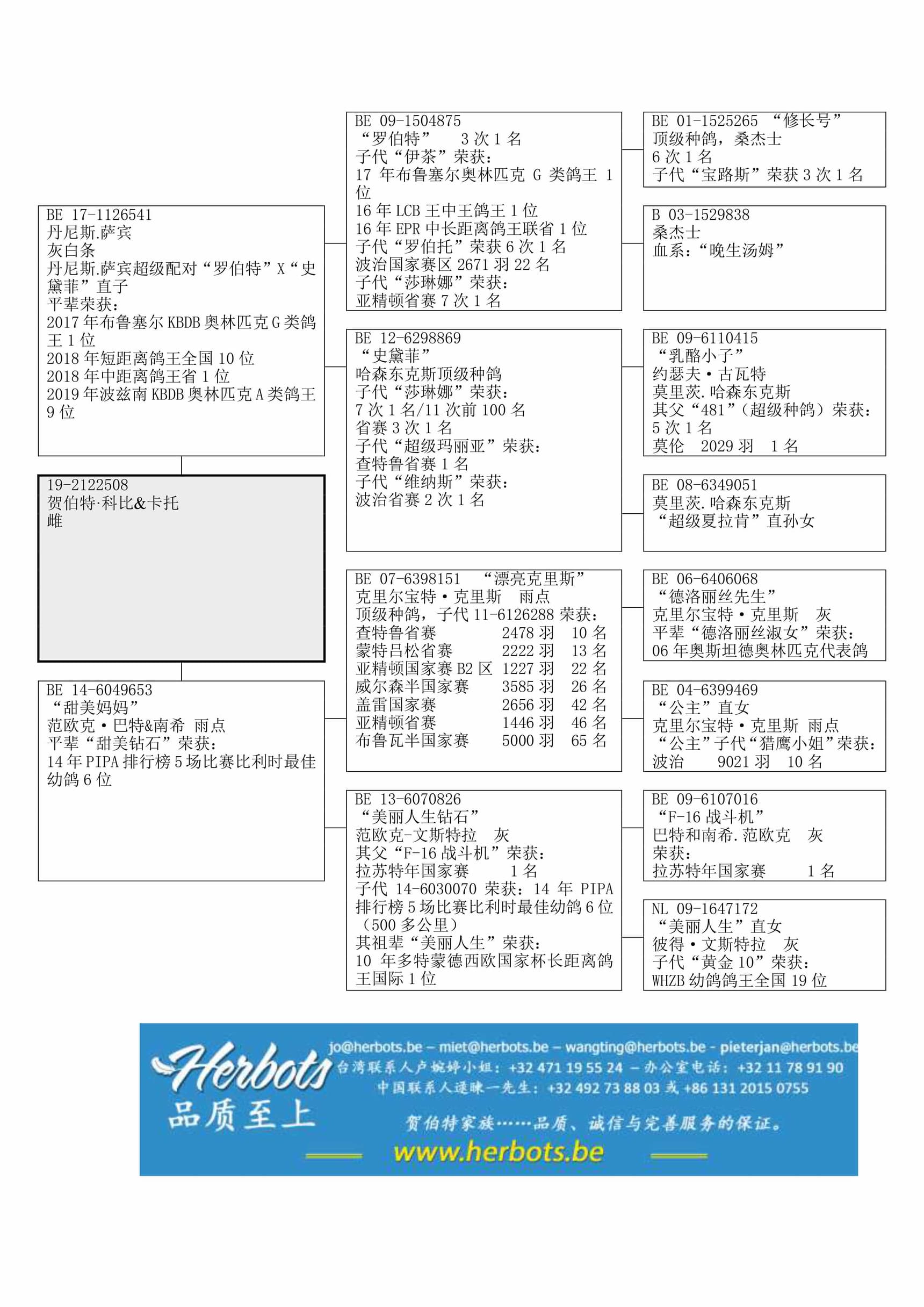 “奥林匹克鸽伊茶之兄弟” (丹尼斯·萨宾) x “温柔妈妈”(2014年国家赛比利时最佳鸽排名6位之姐妹 ) 作出