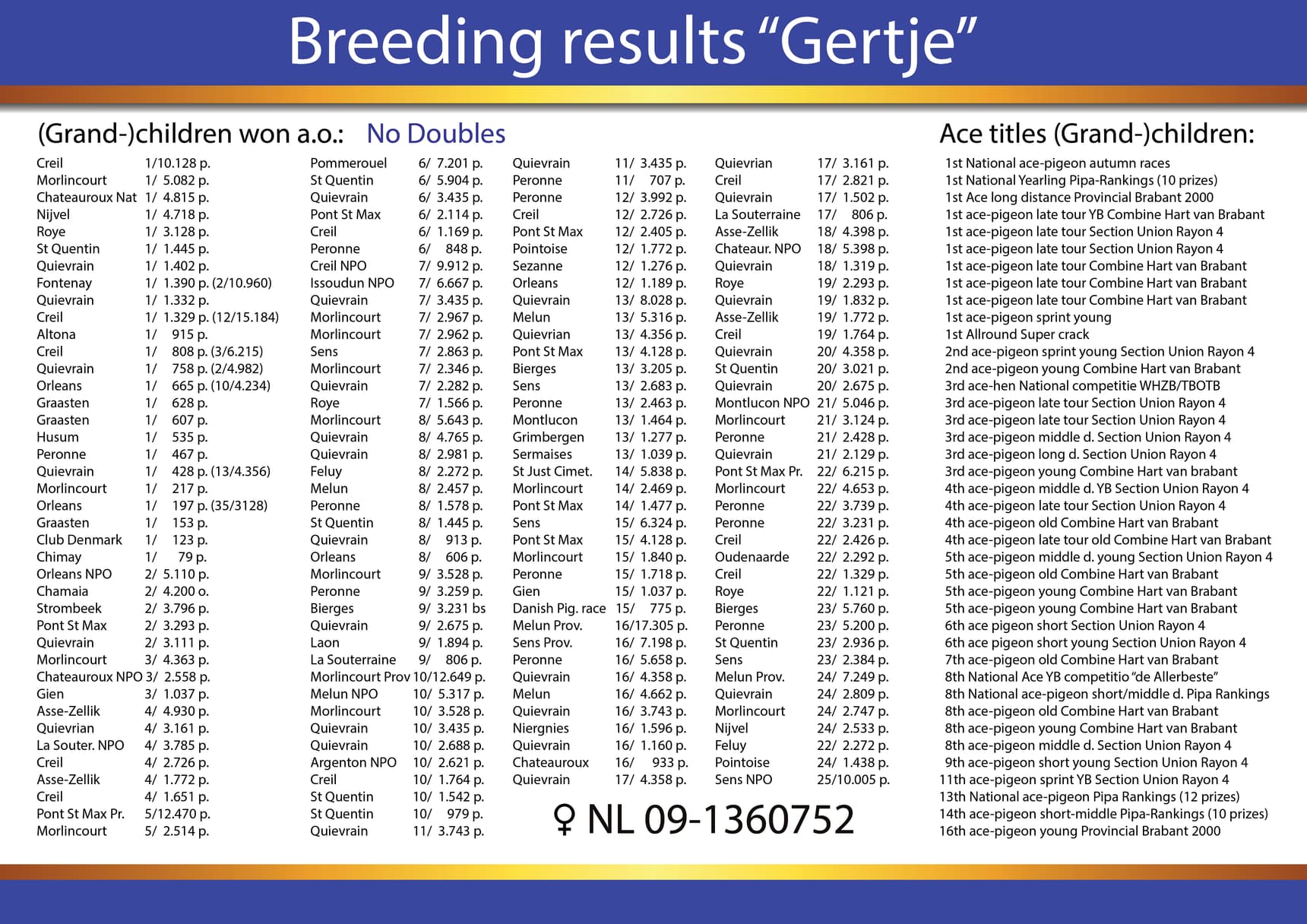 2次电报奖–波提尔国家赛14,201羽4名–NPO 3,376羽8名…等.