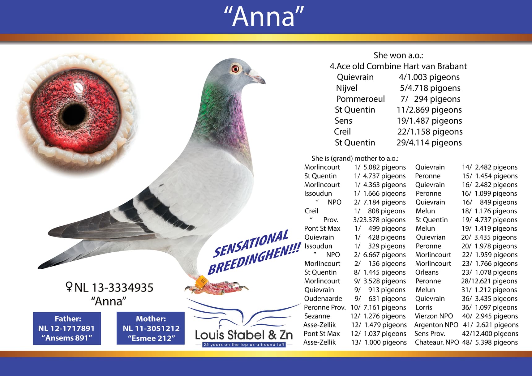 仅一岁鸽时参赛,获奖7次:
