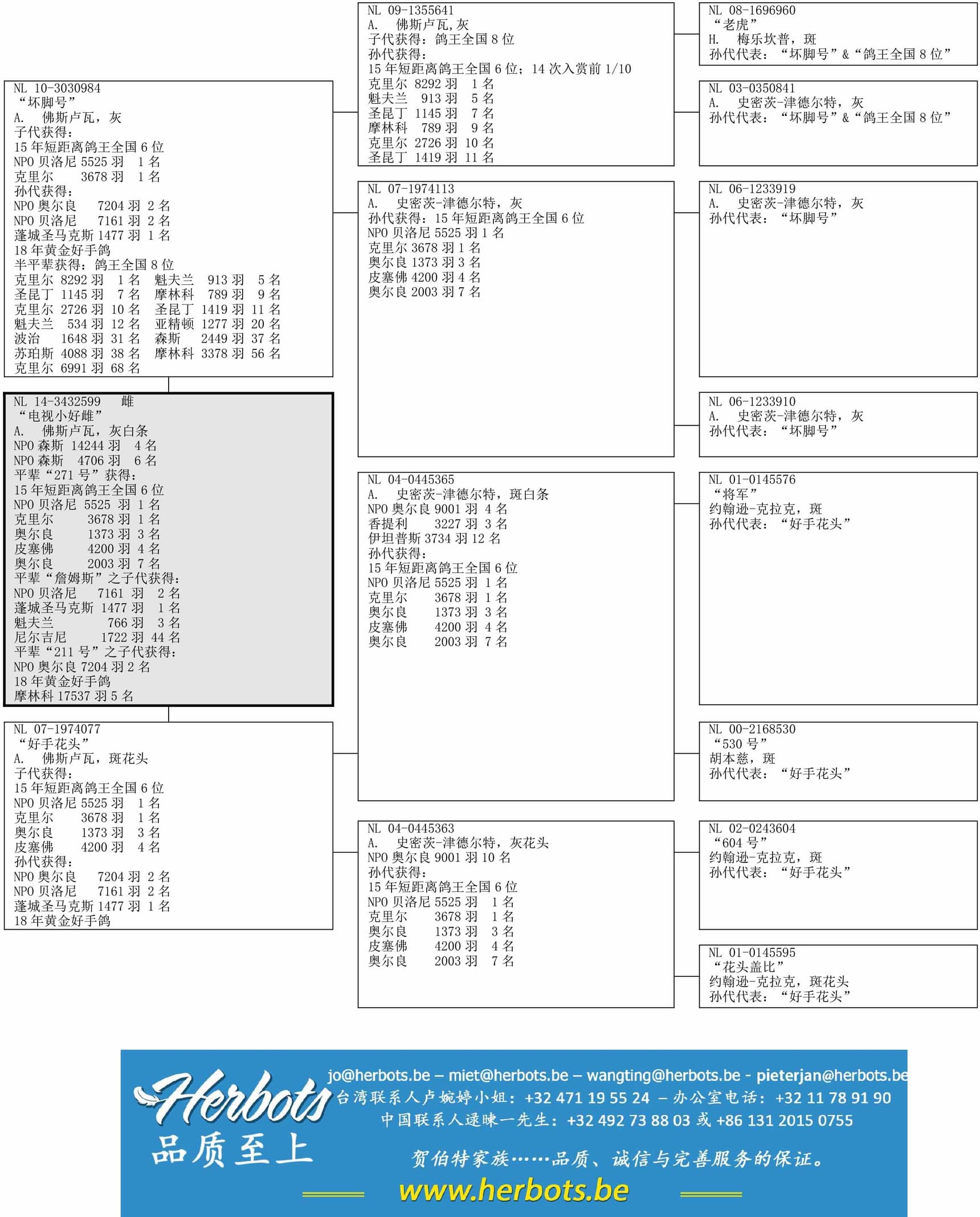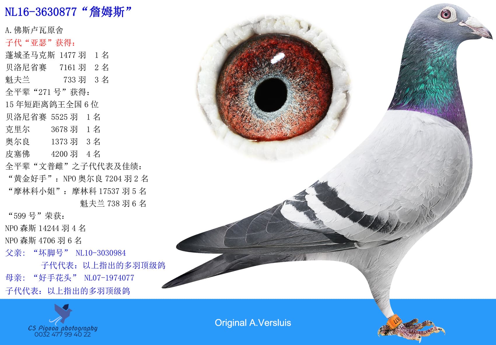 全平辈“詹姆斯”之子代“亚瑟”获得:庞特 1477羽 1名贝洛尼省赛 7161羽 2名魁夫兰 733羽 3名