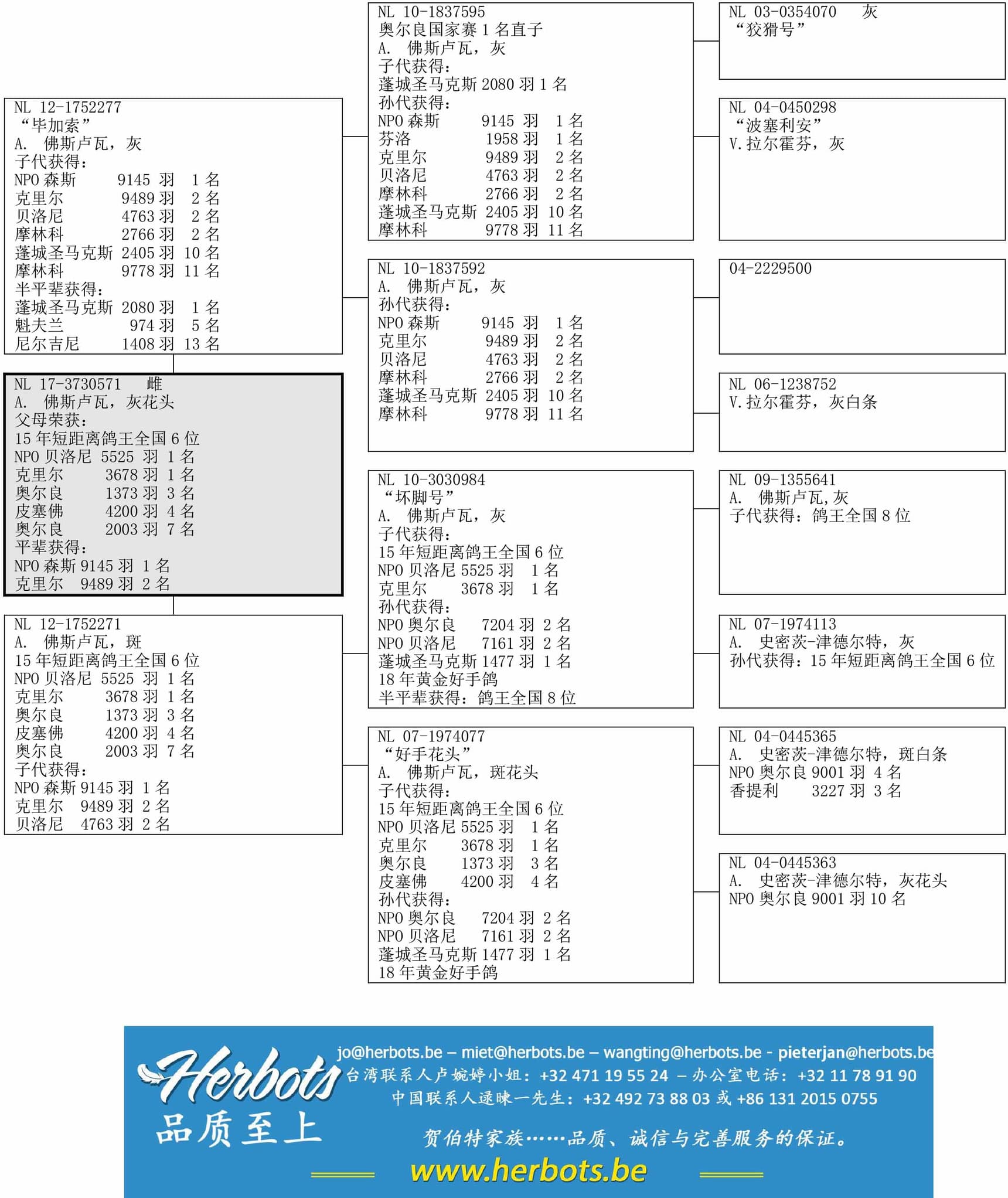 全平辈获得:NPO森斯 9145 羽 1名克里尔 9489羽 2名贝洛尼 4763羽 2名摩林科 2766羽 2名蓬城圣马克斯 2405羽 10名摩林科 9778羽 11名
