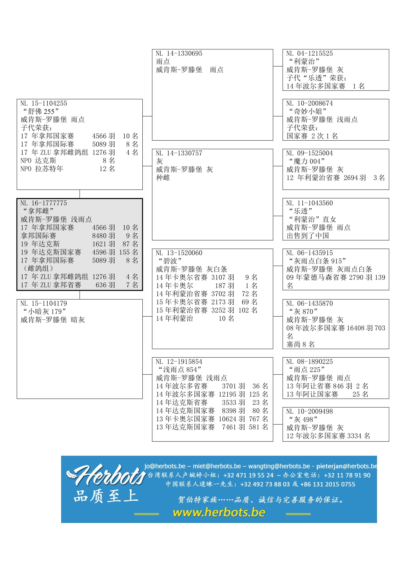 拿邦国际赛雌鸽组 5,089 羽 8名