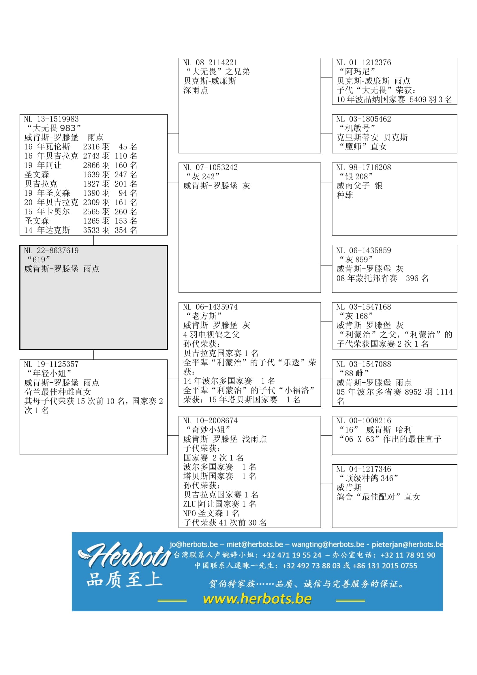 “老板 703”:  布雷索勒 1,648羽13名 – 亚精顿国家赛 9,512羽35名 - NPO 利蒙治 1,654羽41名