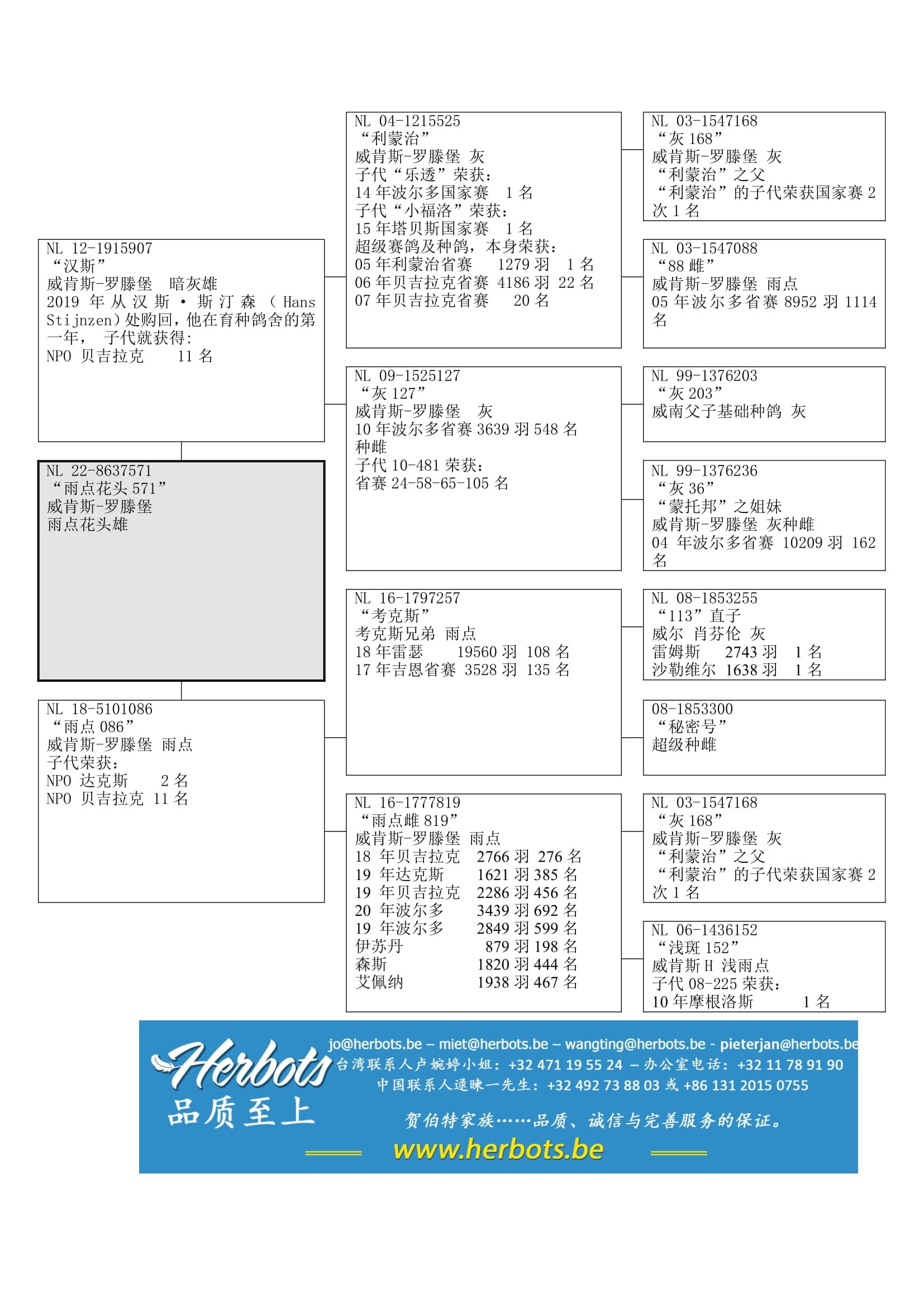 荣获 :利蒙治省赛 1,279羽1名;其子代代表:“乐透” (14年波尔多国家赛1名) 和“小福洛” (15年塔贝斯国家赛1名)