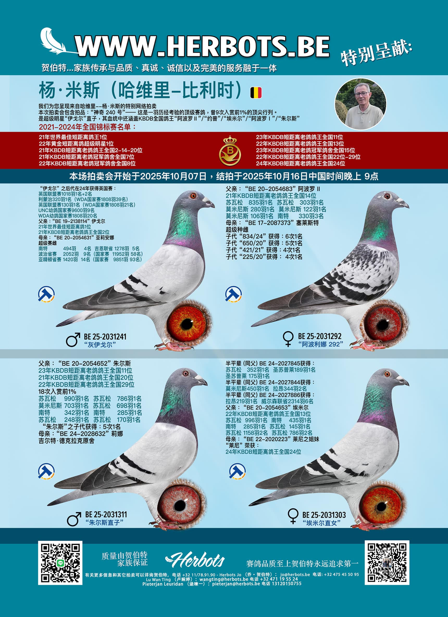 本次拍卖会包含拍品:“神奇 240 号”—— 这是一羽历经考验的顶级赛鸽,曾9次入赏前1%的顶尖行列。