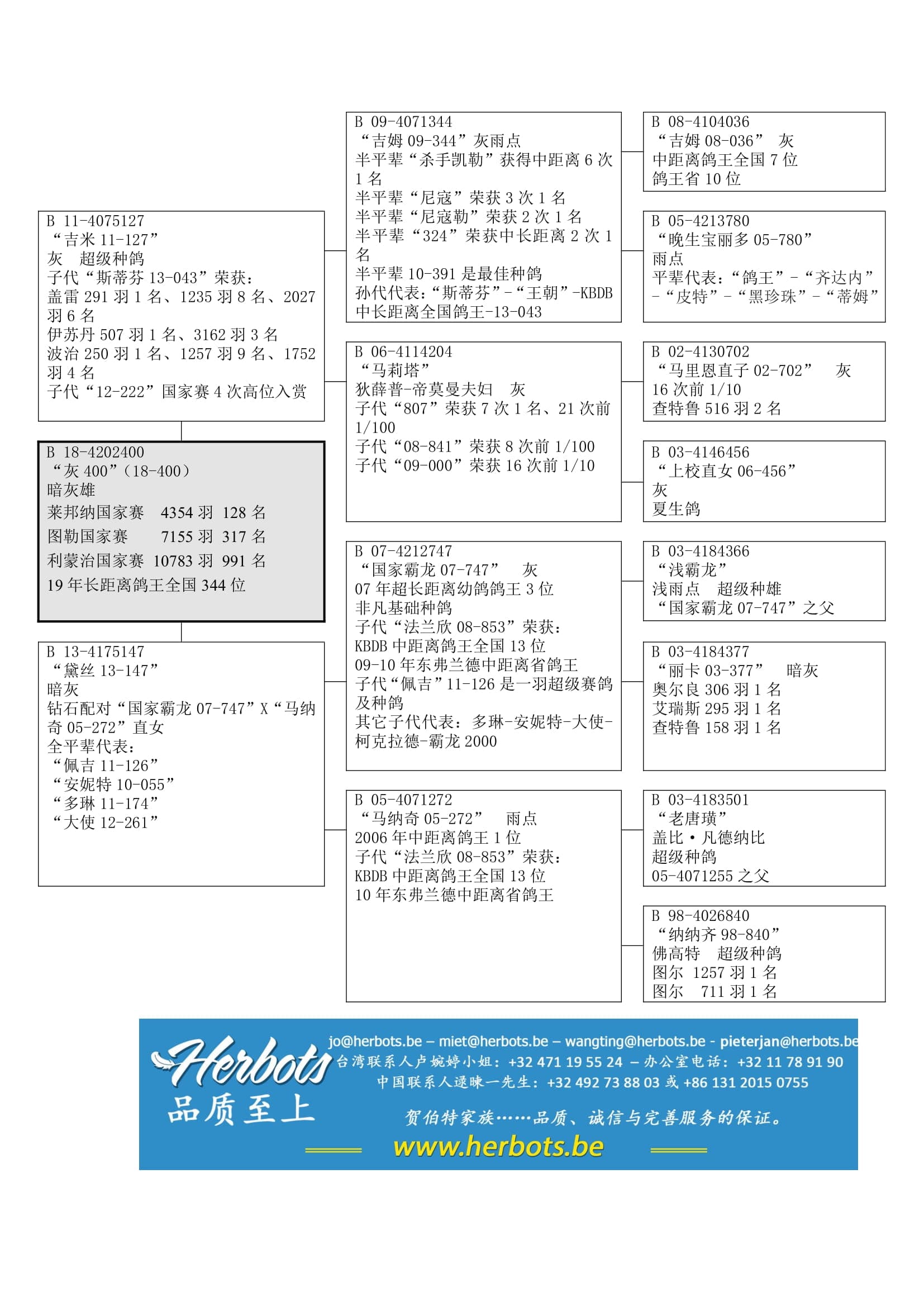 “B07-4212747” (基础种鸽– 子代著名赛鸽代表:“法兰欣”,“佩吉”, “多琳”, “安妮特”, “大使”) x “马纳奇” (俱乐部中距离鸽王1位) 作出
