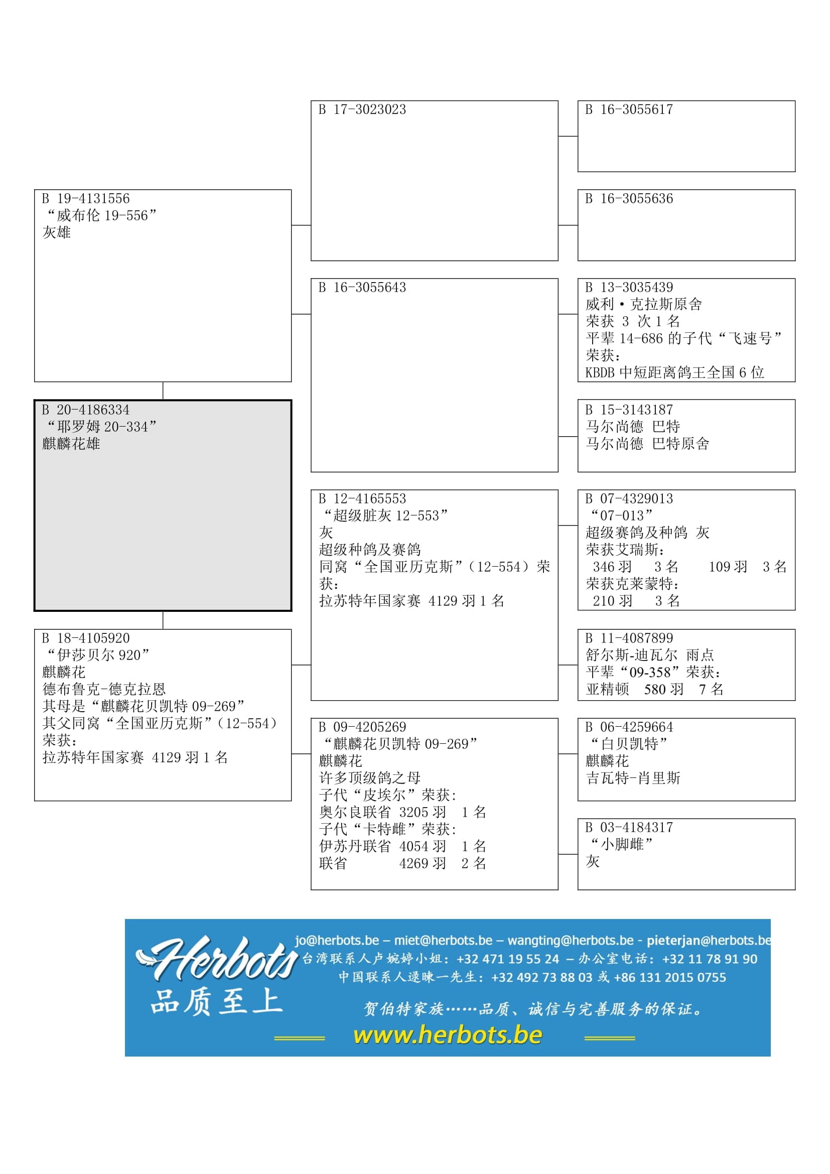 “B12-4165553” (荣获 19 次前1/10以及8 次前10名 -同窝“全国亚历克斯”荣获 拉苏特年国家赛1名) x “B09-4205269” (子代荣获:奥尔良联省 3,205羽1名以及伊苏丹联省 4,054羽1名) 作出