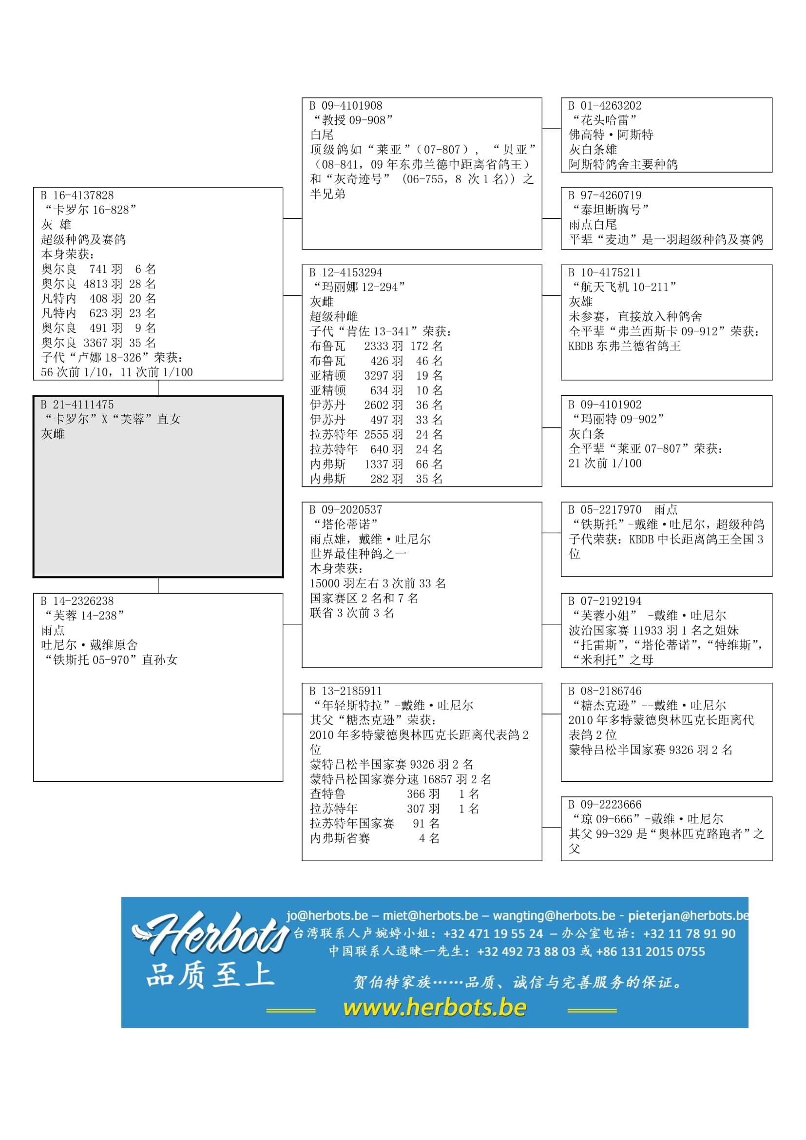 顶级鸽如“莱亚”, “贝亚”以及“灰奇迹号” (8 次1名)等之半兄弟