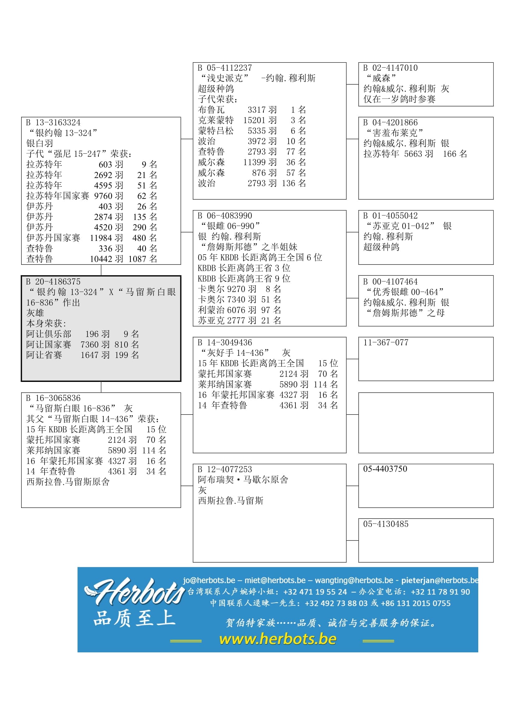 “强尼”之父. “强尼” 荣获: 图勒国家赛 7,322羽77名 – 拉苏特年国家赛 9,760羽62名 – 伊苏丹国家赛 11,984羽480名