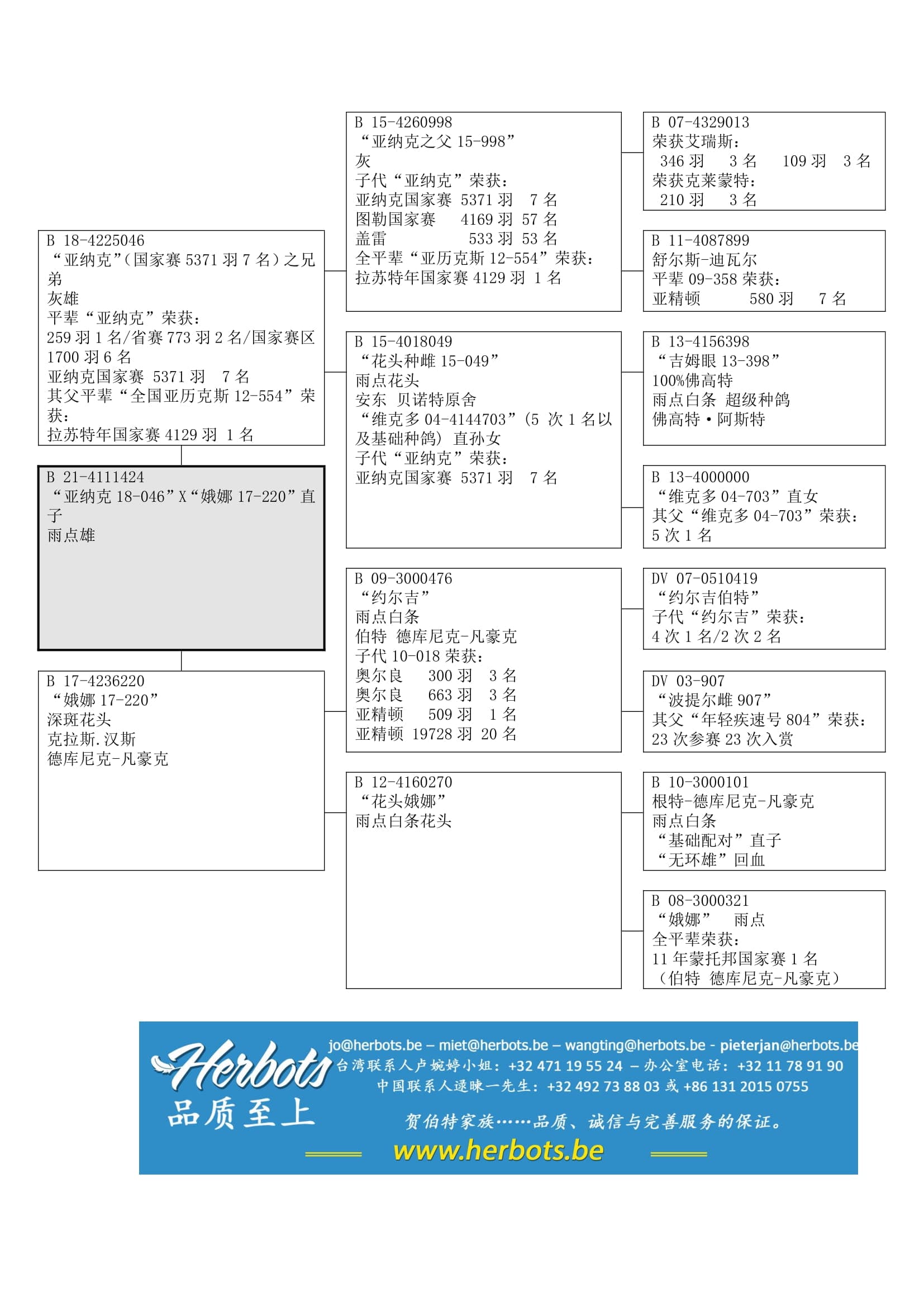 “B15-4260998” (拉苏特年国家赛 4,129羽1名之全兄弟) x “B15-4018049”作出